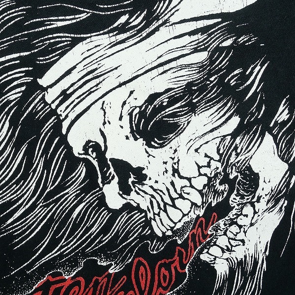 | 状態説明 | 着用感があり、ボディ全体に毛羽立ちや色褪せがあります。フロントプリント部分にひび割れがあります。 |