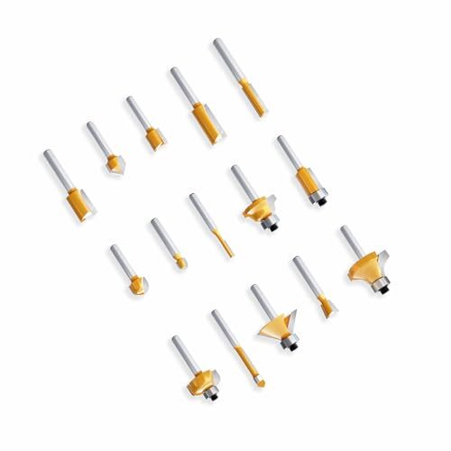 CSOOM 15本組 亜麻仁油木製収納ボックス付き 軸径6mm プロ木工トリマービットセット 超硬ルーターセット木工工具のルータビットセット