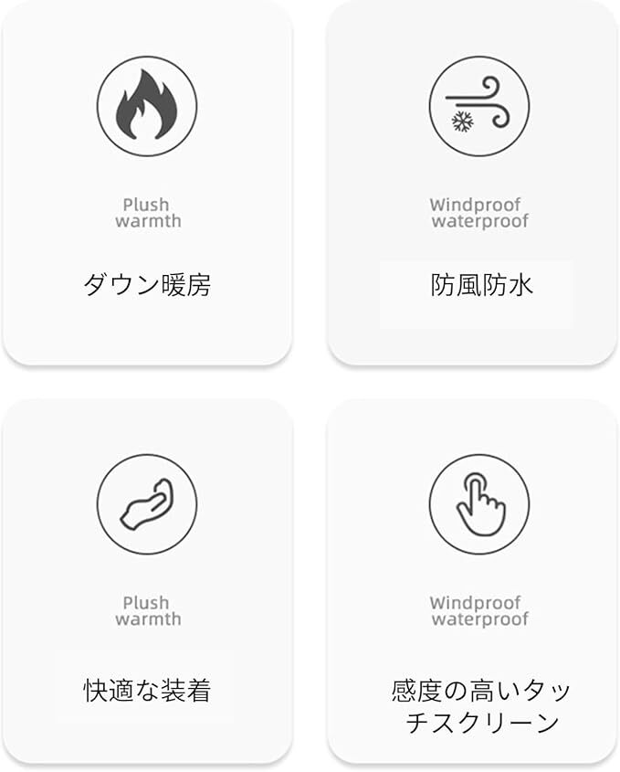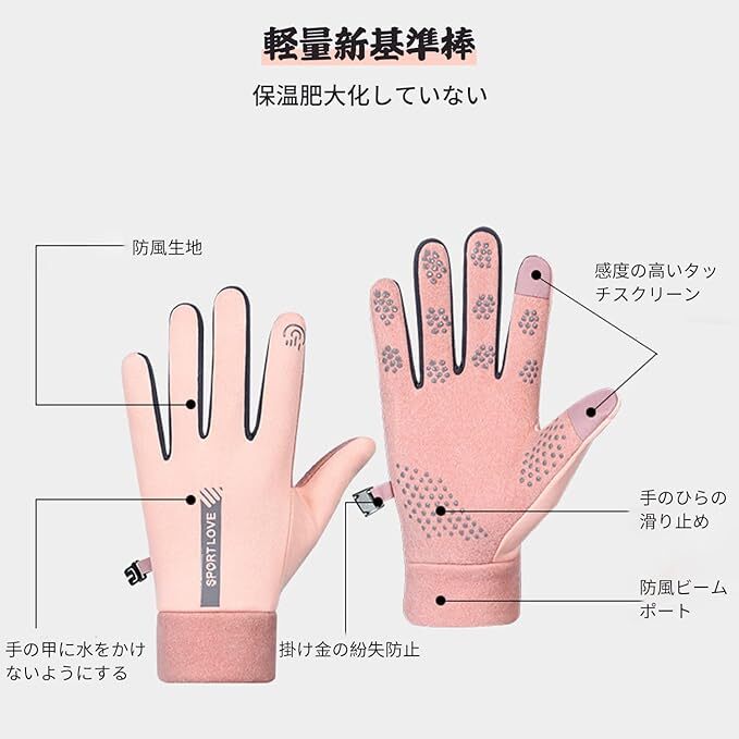 • - 防風機能付き:特別な防風生地を使用し、冷たい風から手を守ります。アウトドア活動に最適です。