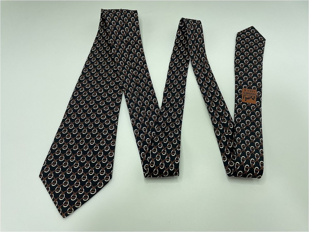 【超美品】HERMES エルメス チェック柄 ネクタイ 3本以上 送料無料 メンズ ブラック 1102195