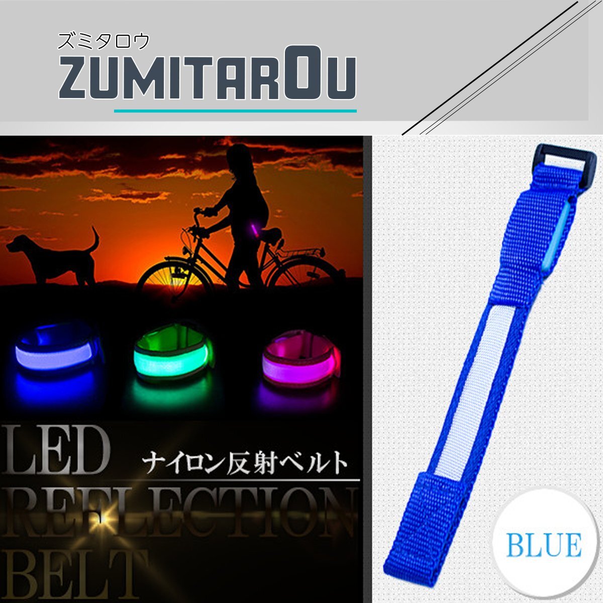 【送料250円】LED 反射ナイロンベルト ブルー/青 反射ベルトストラップ 散歩/ウォーキング 愛犬首輪 反射ベルト 夜間 安全対策 犬 猫