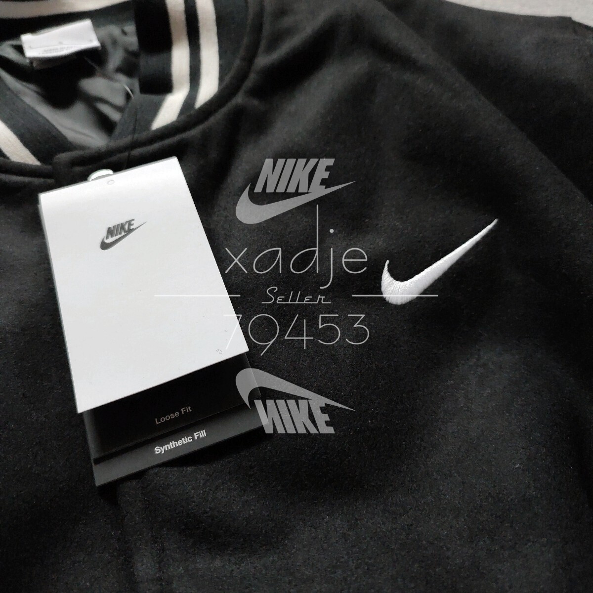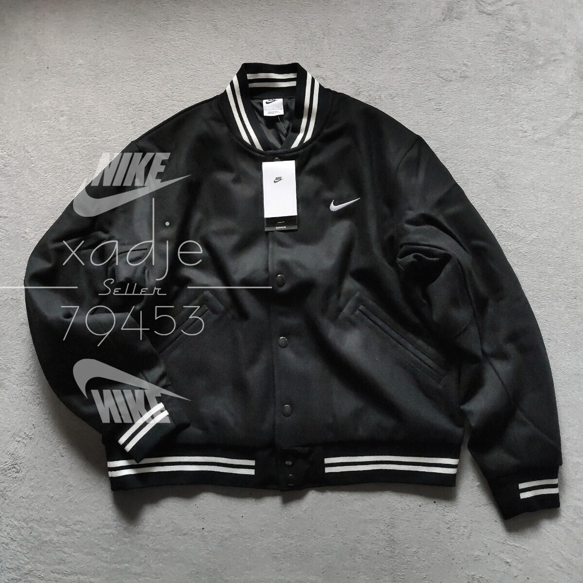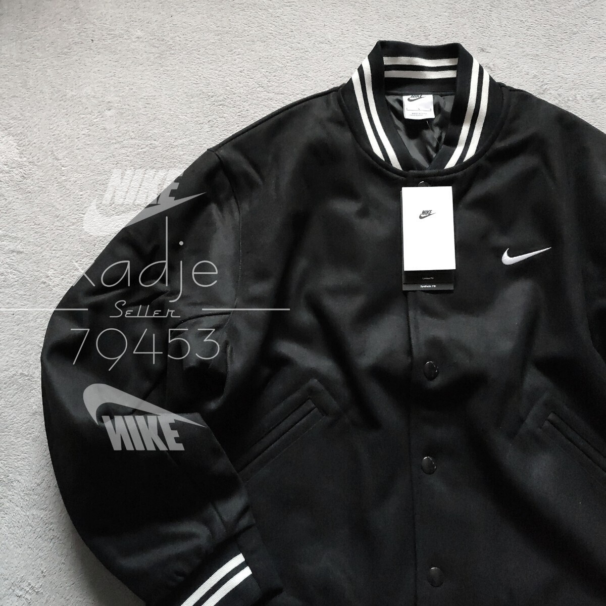新品 正規品 NIKE ナイキ ウール バーシティ ジャケット スタジャン 中綿入り 厚手 防寒 スウッシュ 刺繍 黒 ブラック 定価24200円 2XL XXL