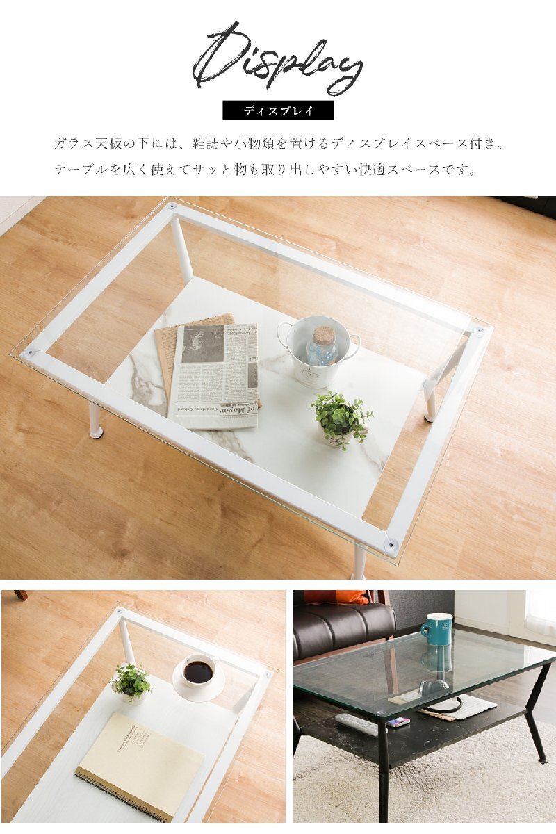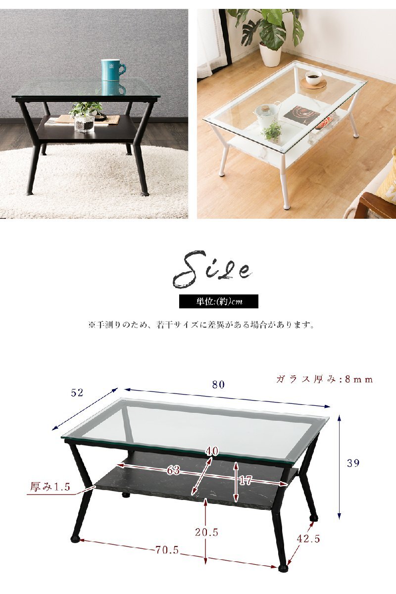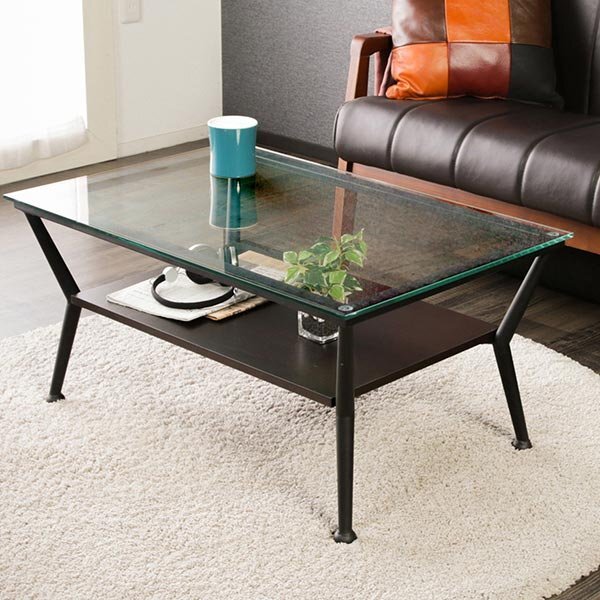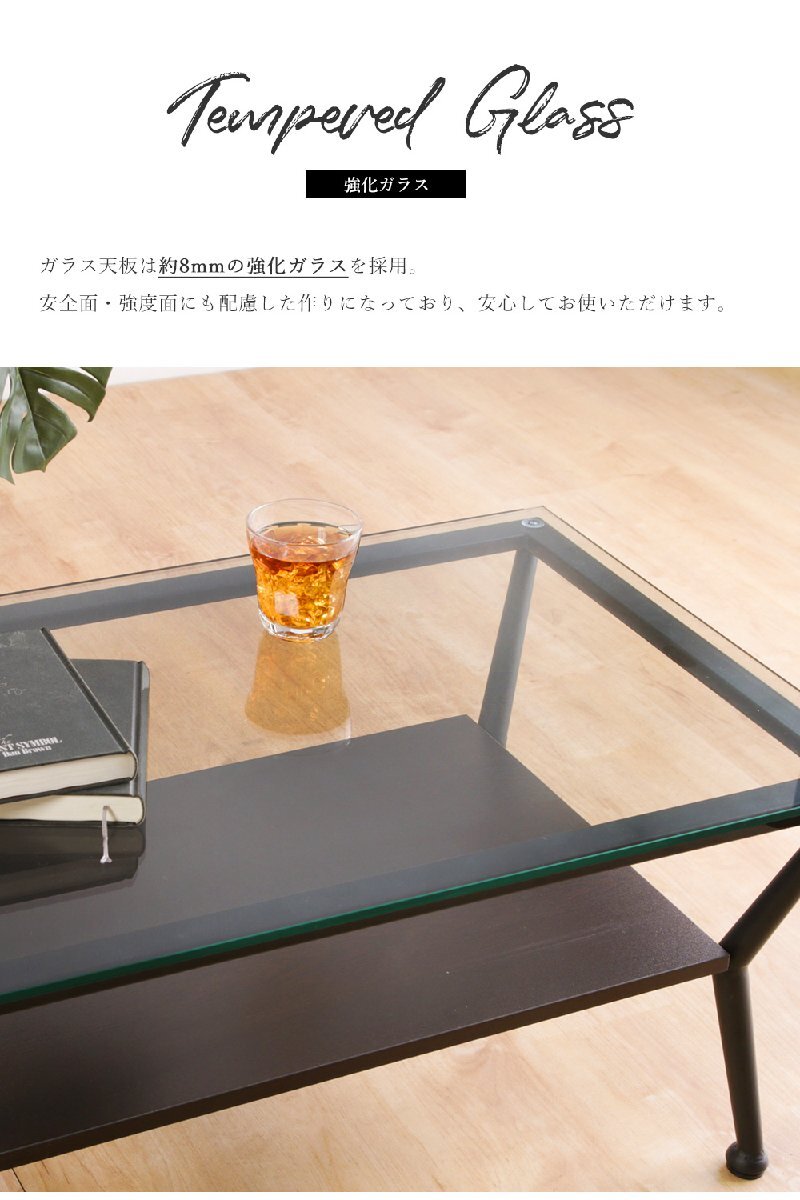 センターテーブル ガラス天板 80cm幅 ガラステーブル リビング テーブル 強化ガラス デザイン性 中板 魅せる おしゃれ ダークブラウン