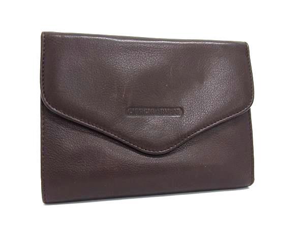 GIORGIO ARMANI ジョルジオアルマーニ レザー 三つ折り がま口 財布 ウォレット 札入れ 小銭入れ メンズ ブラウン系 DH9677