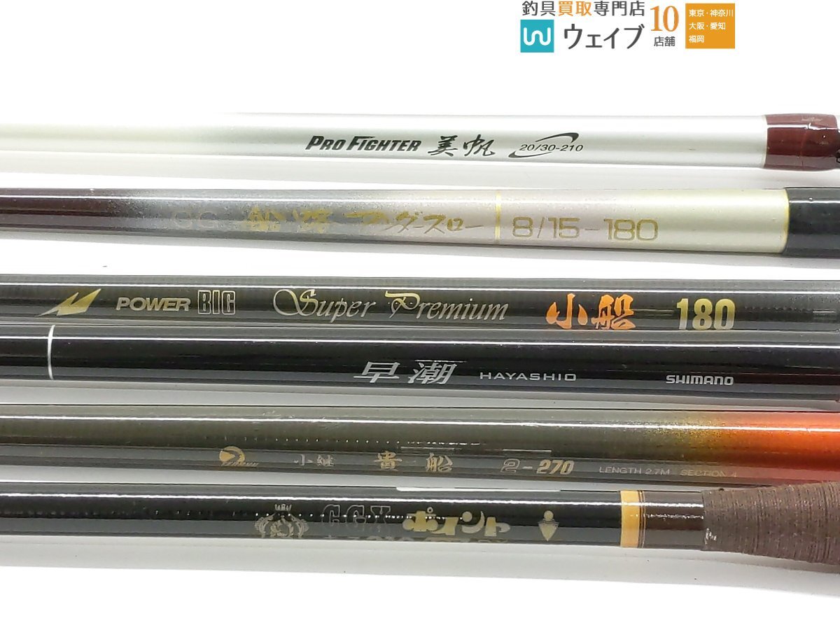 | 商品名 | シマノ 早潮 20-240T、テンリュウ 小継 貴船 2-270、アルファタックル プロファイター 美帆 20/30-210 ※ 等 6本セット |