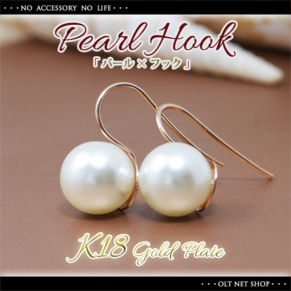 新品/ピアス/K18GP/一粒/パール/真珠/フック/シンプル/18金/ピンクゴールド/レディース/両耳/上品/フォーマル/卒業式/入学式/女性