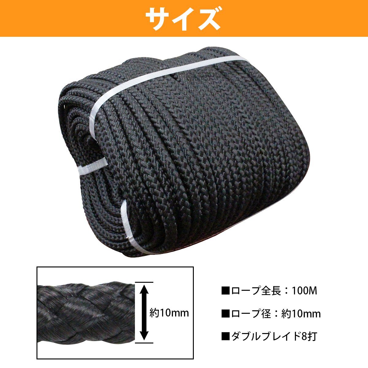 8打 10mm 100m 係留ロープ フェンダーロープ ダブルブレイド 黒/ブラック マリン ロープ 船 係船 ロール 10ミリ アイ加工無