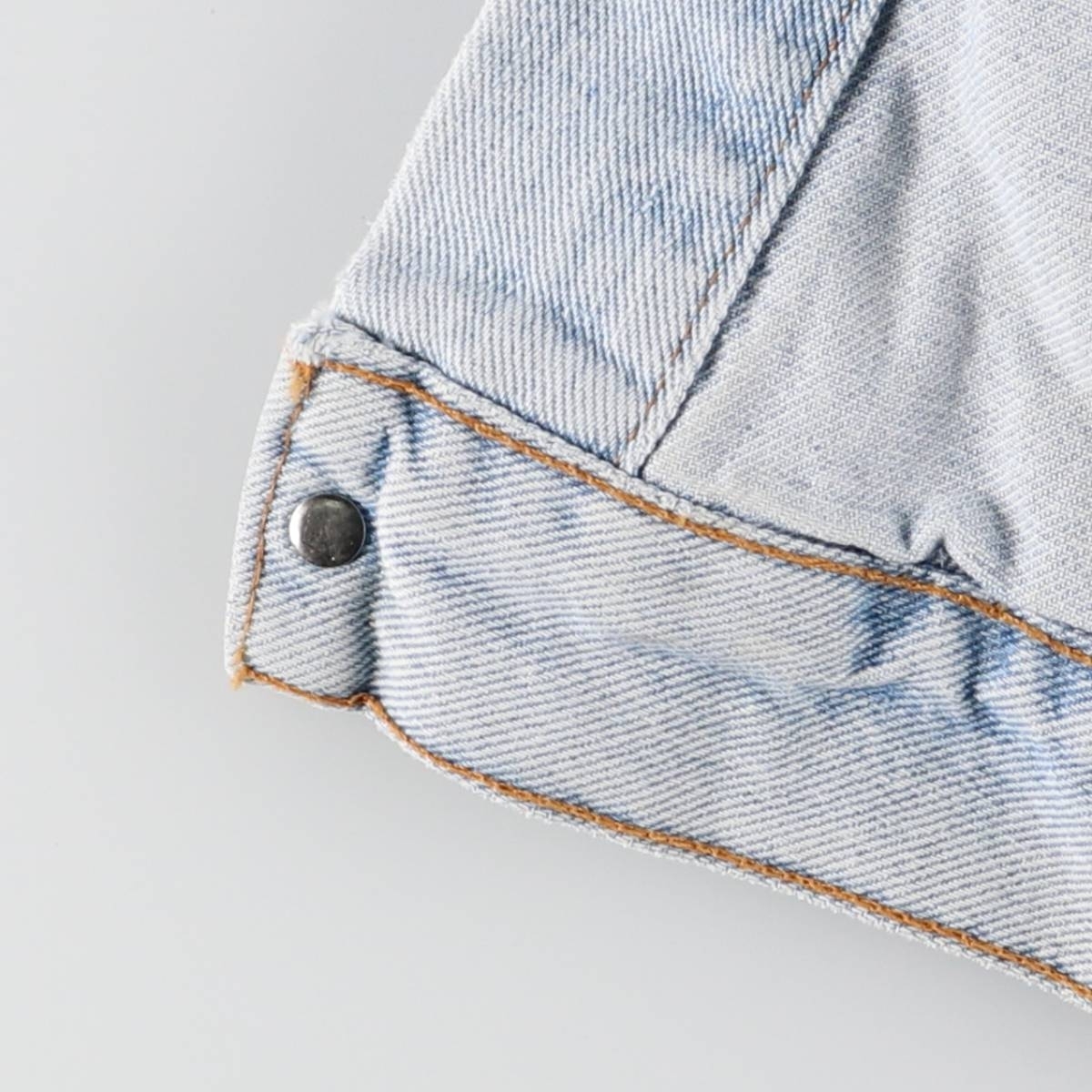 | 着用感: メンズXL 表記サイズ: 不明 着丈: 55cm 身幅: 61.5cm 肩幅: 59.5cm 袖丈: 55cm ![]() | ![]() ランク:C USEDデニムですので使用感、擦れ、色落ちなどございますが、まだまだご愛用していただけます。 古着という事をご理解の上ご注文よろしくお願いします。 【状態追記】 ●全体的に薄汚れあり ●前、第5ボタン使用感硬め ●内側、全体的に薄汚れあり ●内側、襟・左右袖先に汚れ |