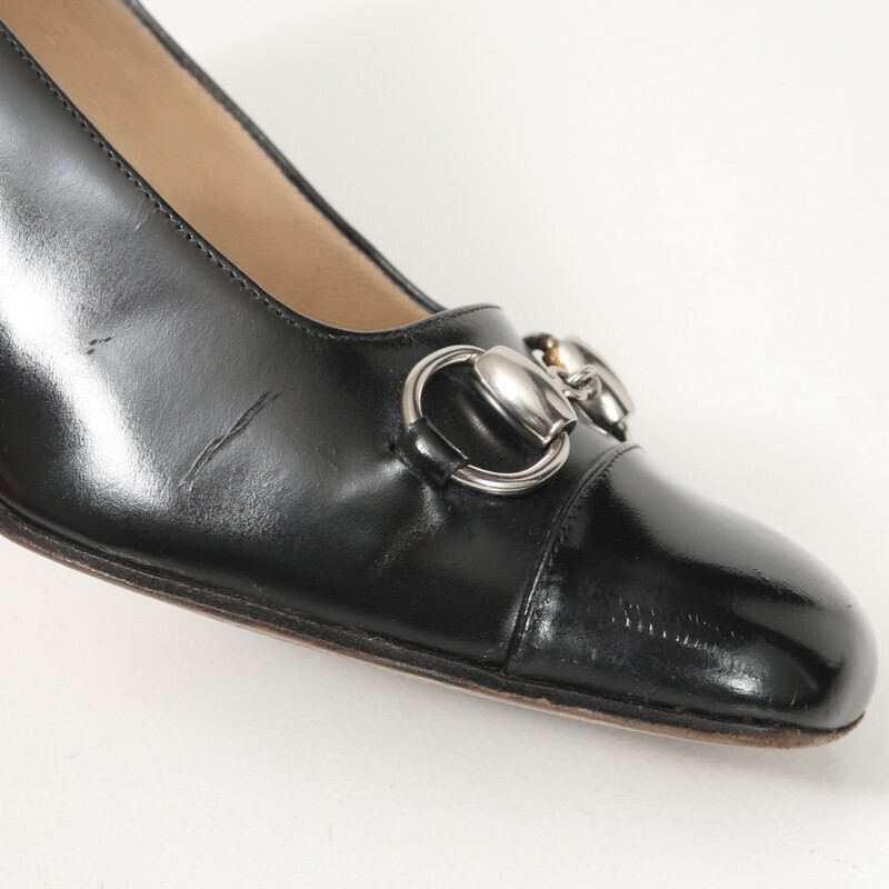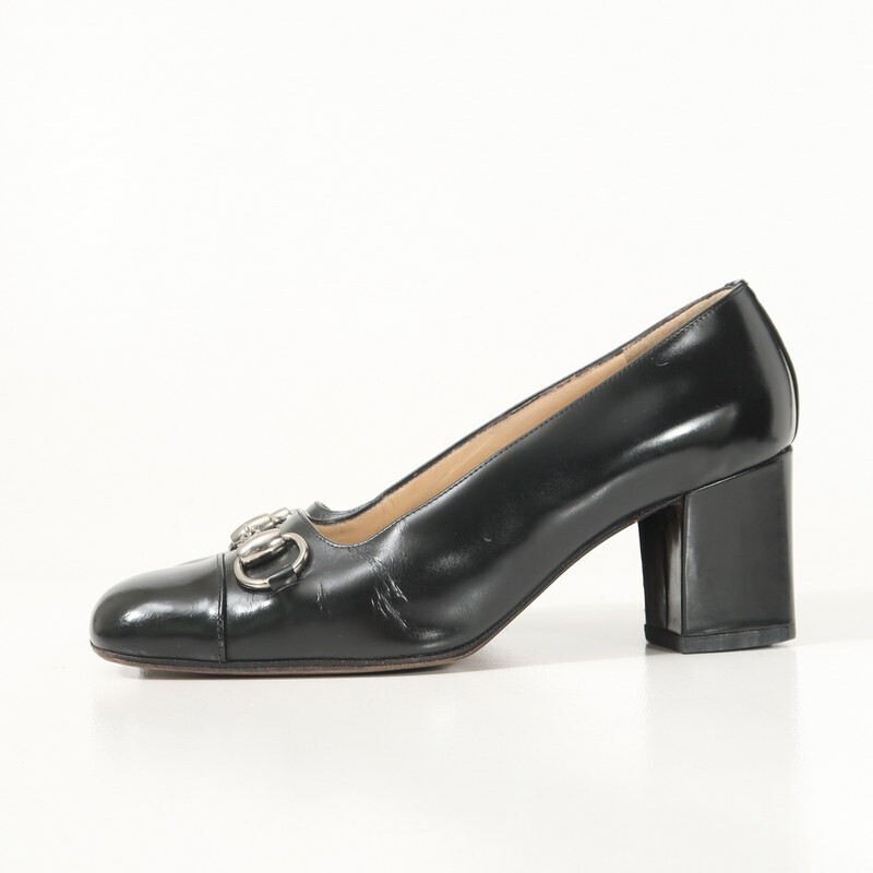 | SGS4976〇イタリア製*GUCCI グッチ*ホースビット レザー チャンキーヒール パンプス*7B(24cm相当)*靴*ブラック | |||