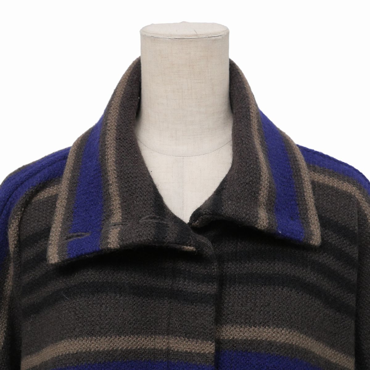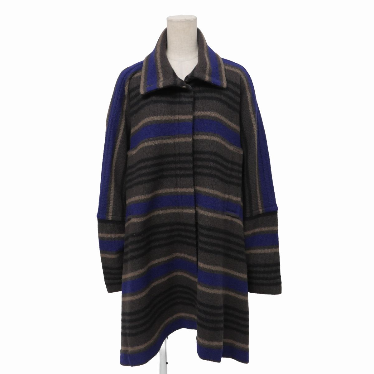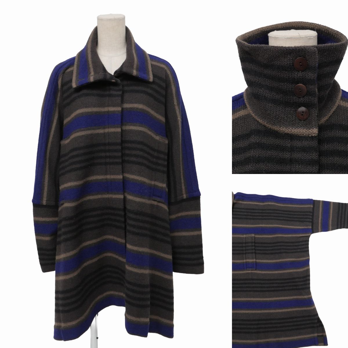 | TJ1560◇イタリア製 ミッソーニ MISSONI ウール ボーダー柄 ニットコート ワイド幅 比翼 ブラウン×ネイビー系 サイズ42 | |||
