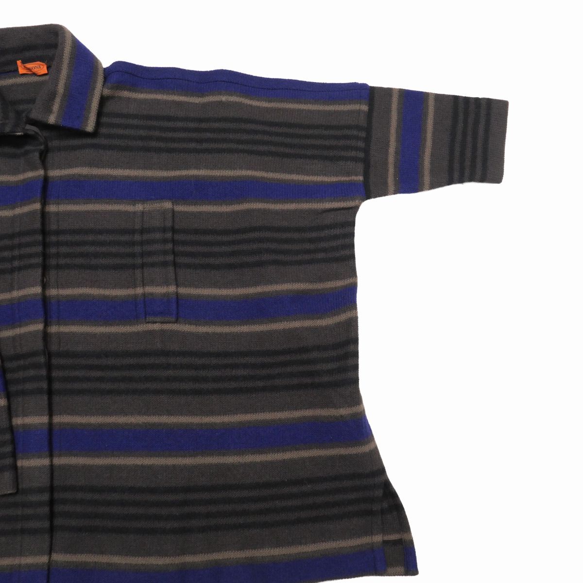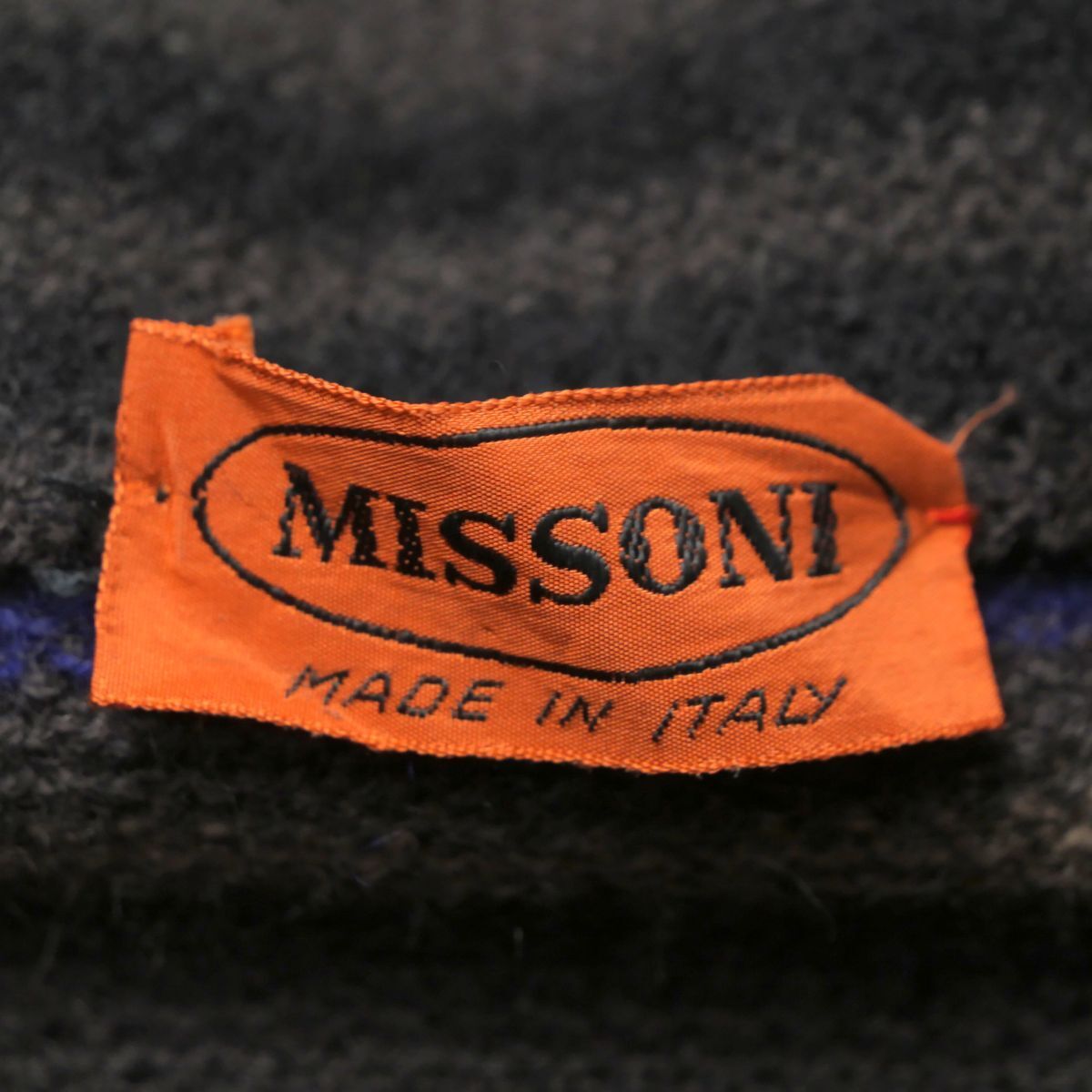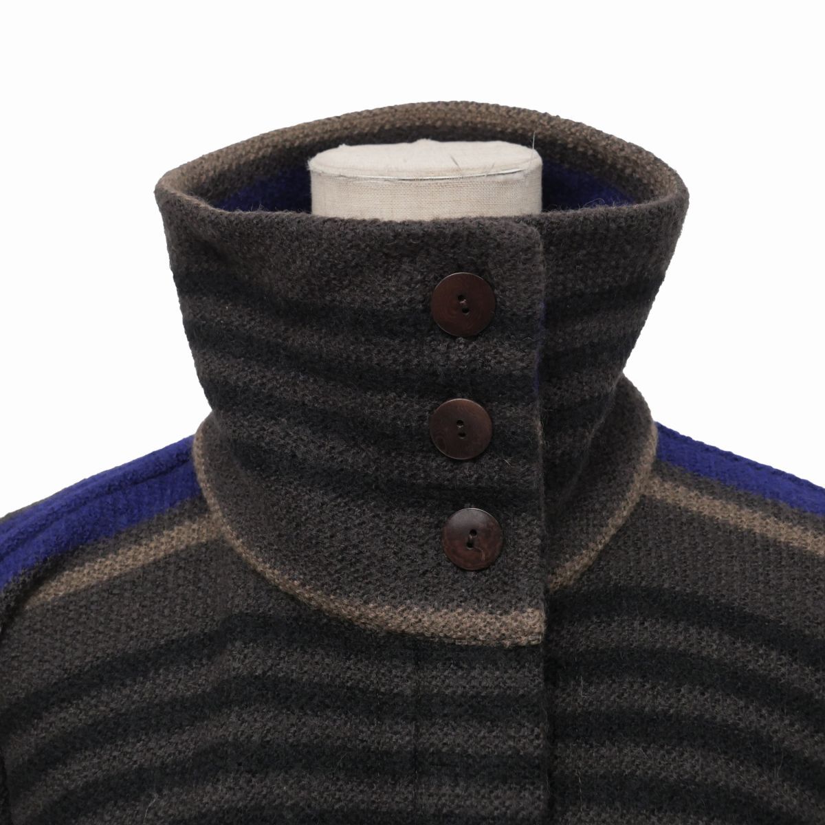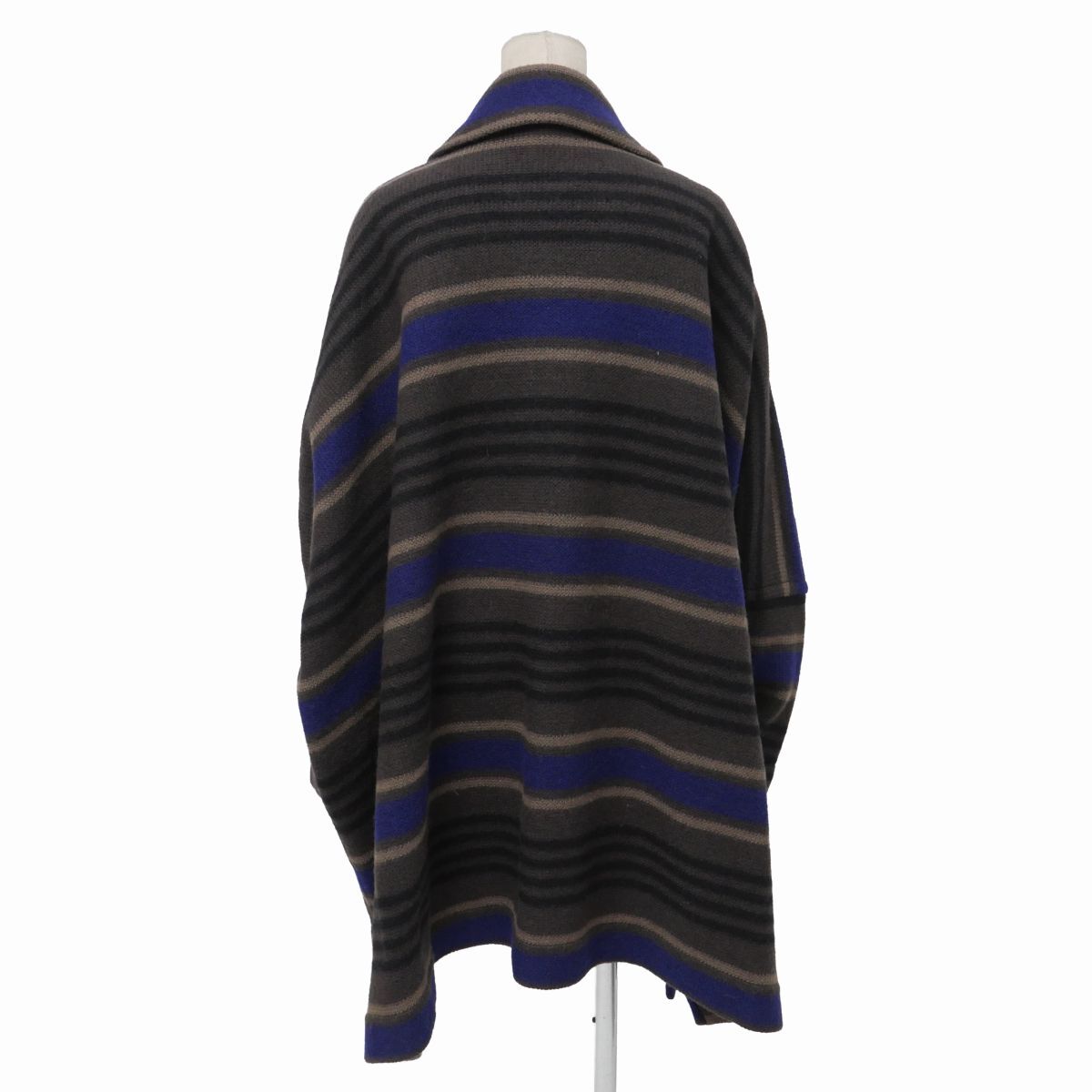 | TJ1560◇イタリア製 ミッソーニ MISSONI ウール ボーダー柄 ニットコート ワイド幅 比翼 ブラウン×ネイビー系 サイズ42 | |||