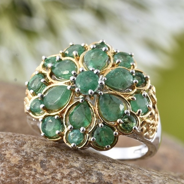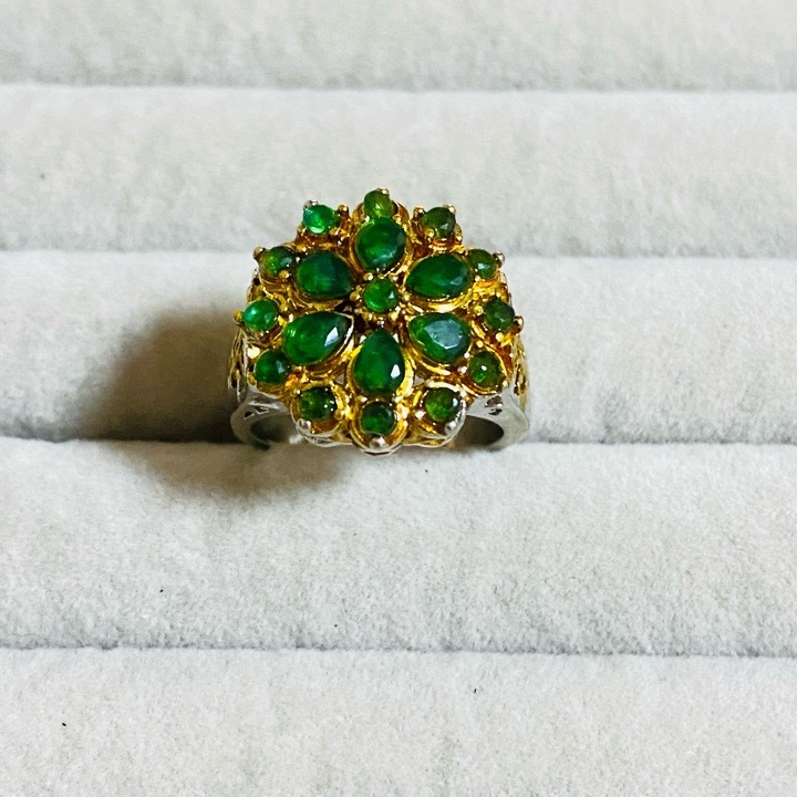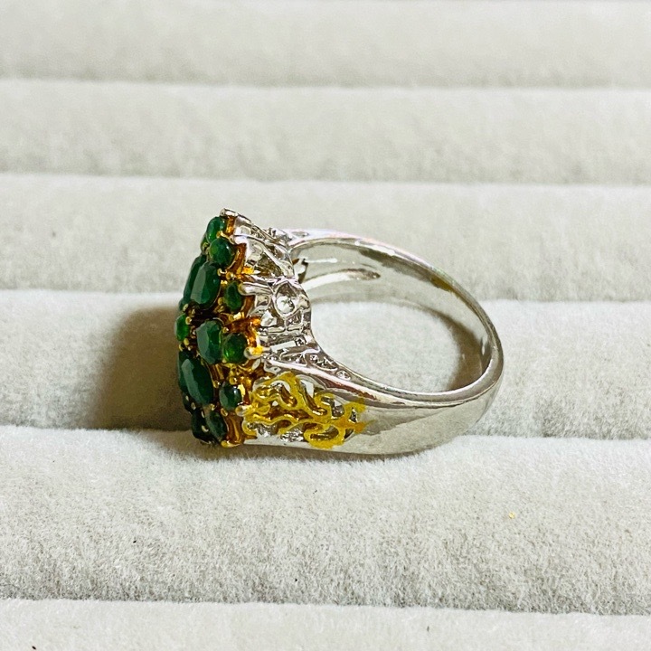 【YB451-7】指輪 リング エメラルド フラワー シルバー ゴールド 花 きれいめ ゴージャス パーティー 派手 グリーン 緑 モチーフ