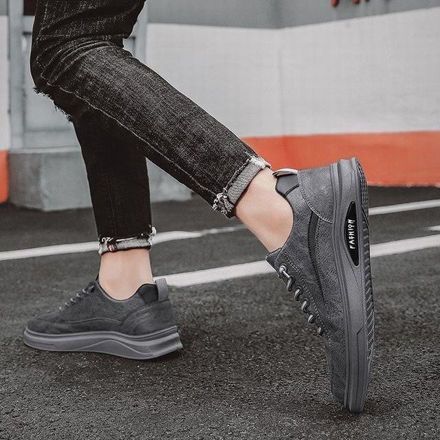 スニーカー スポーツシューズ メンズ メンズシューズ ぺたんこ スポーツ 男靴 スリッポン 革靴 通勤 通学 歩きやすい グレー 25.5cm