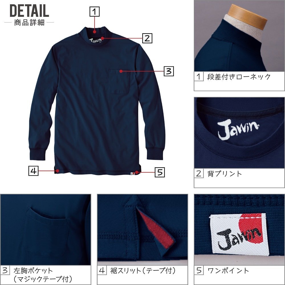 Jawin ジャウィン 通年 吸汗速乾 長袖 ローネック シャツ 快適な着心地 55324 色:ブラック サイズ:S ★ 対象2点 送料無料 ★