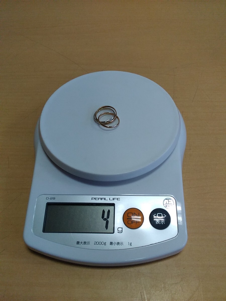 重さ4g、幅2mm、直径約1.6cm位になり10号のサイズだと思いますが実際とは違う可能性があります。