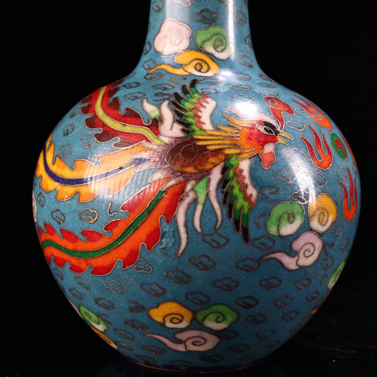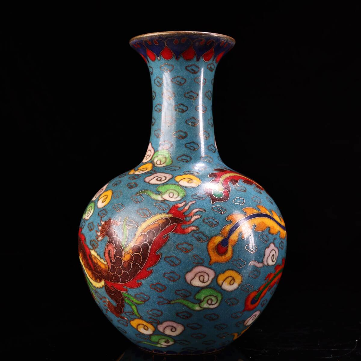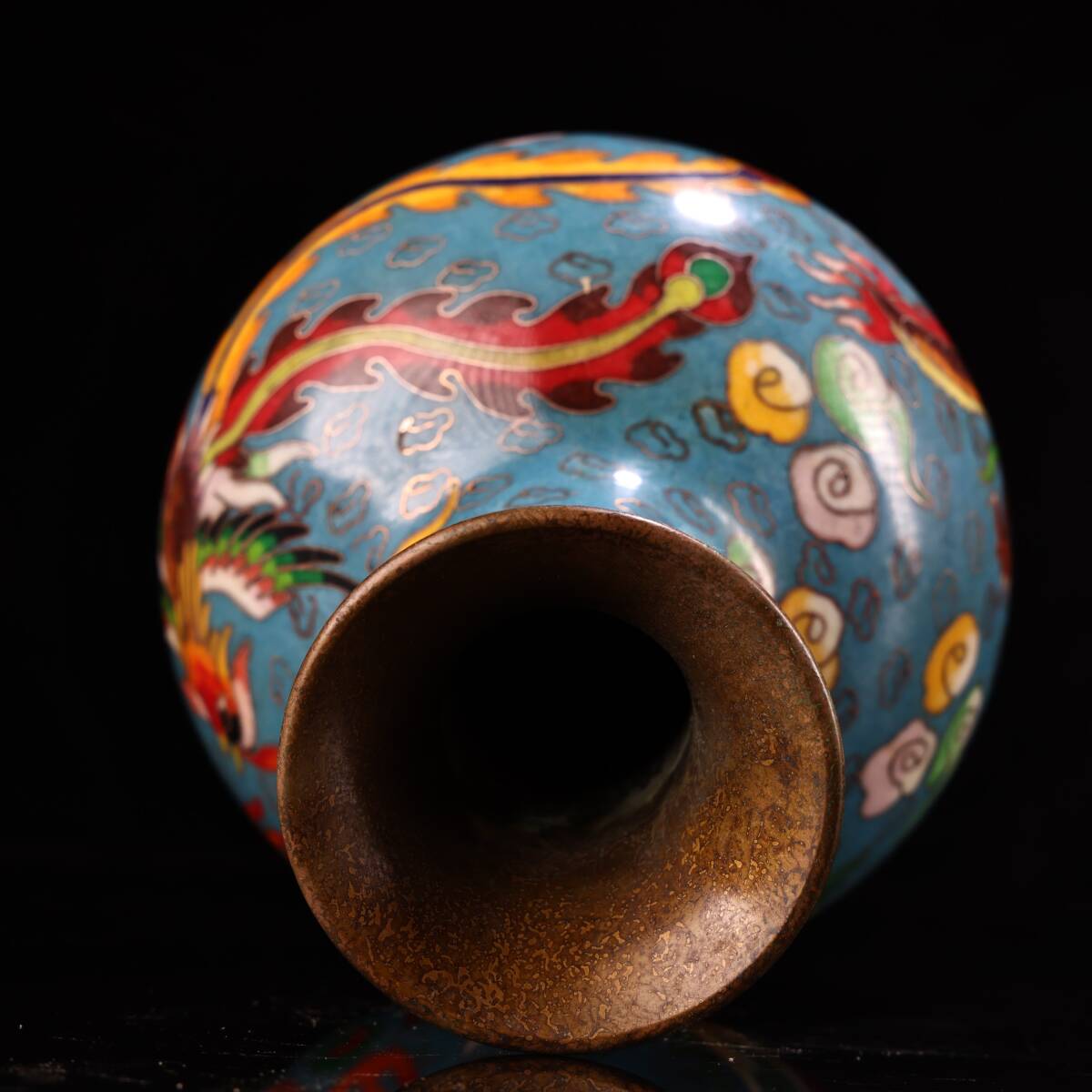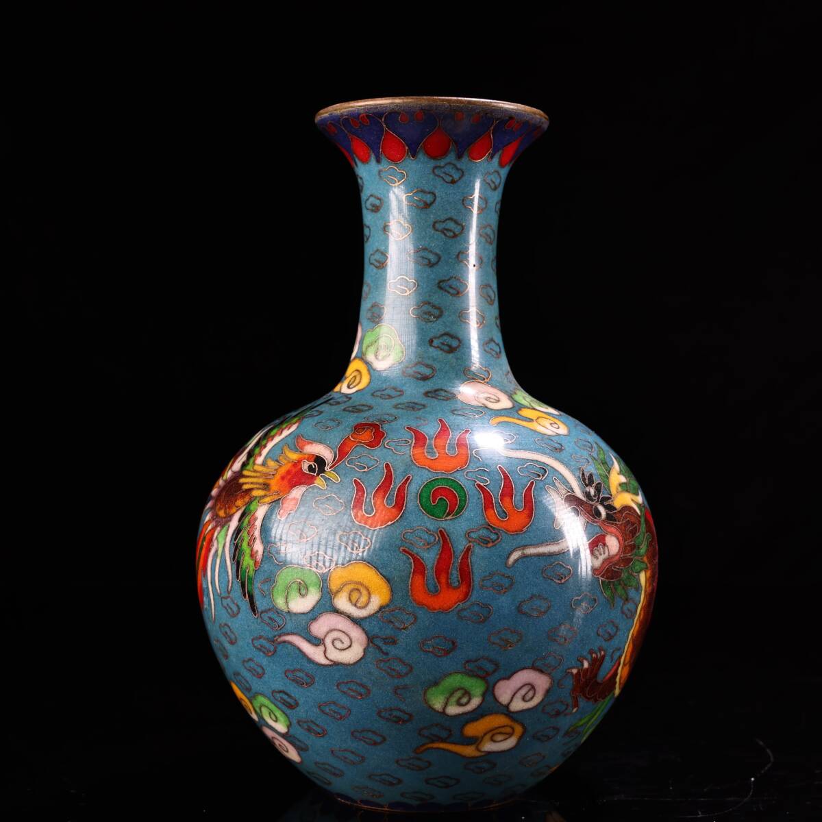 館蔵 清時代 乾隆款 銅胎景泰藍 琺瑯彩 龍鳳呈祥紋 花瓶 花器 古擺件 古置物 中国古美術 古美味 蔵出