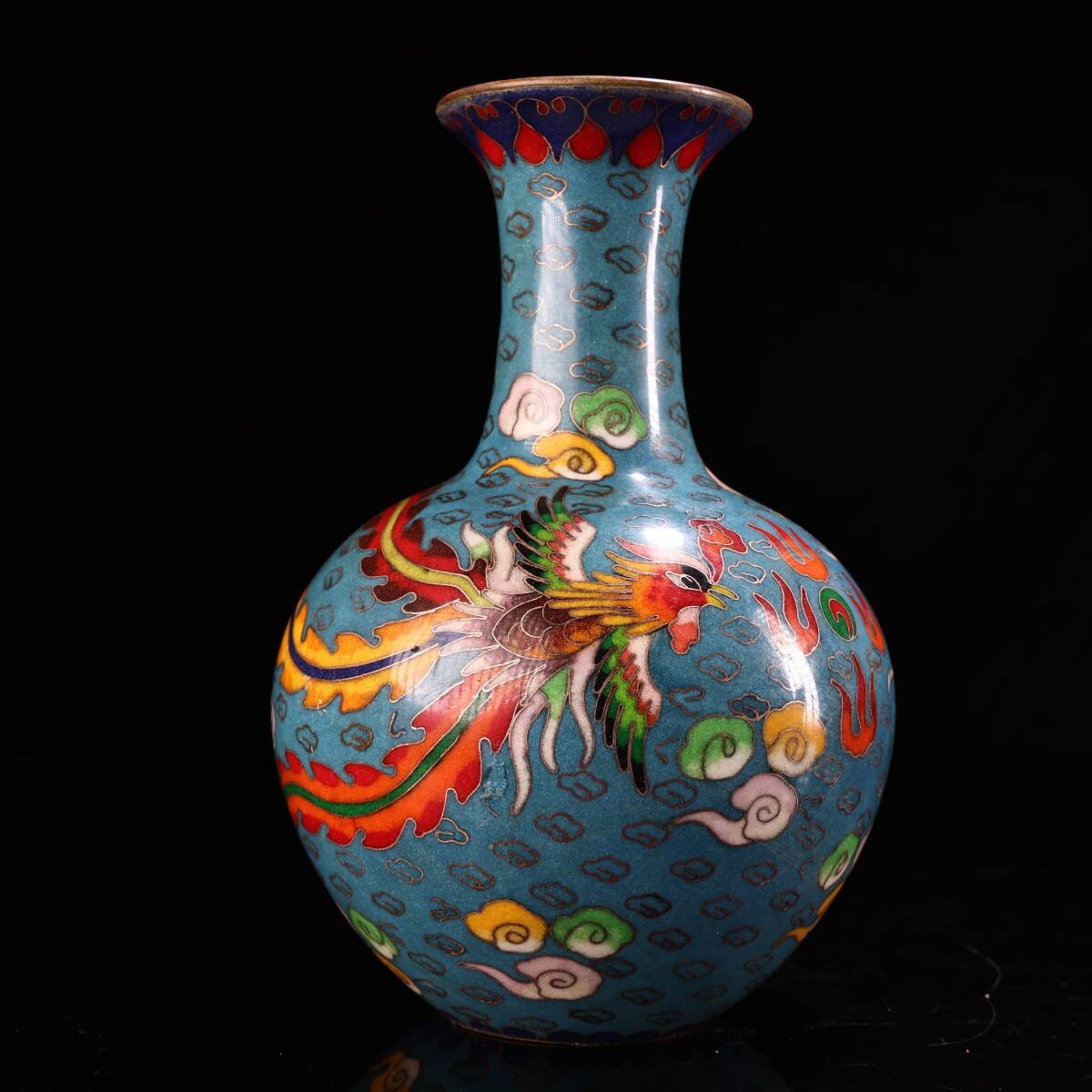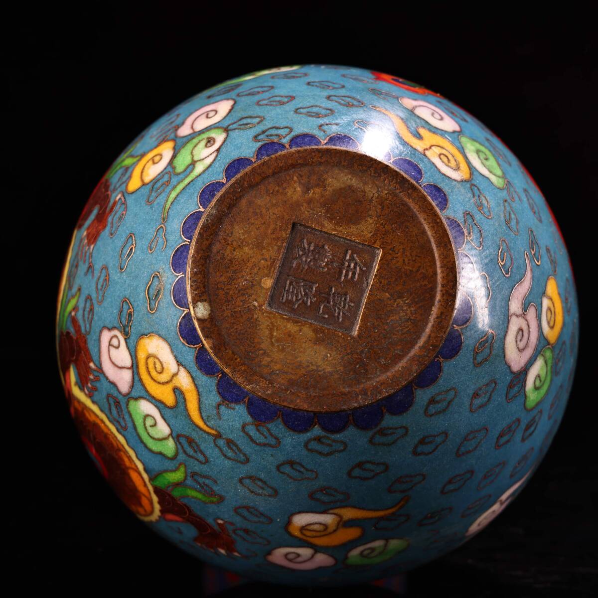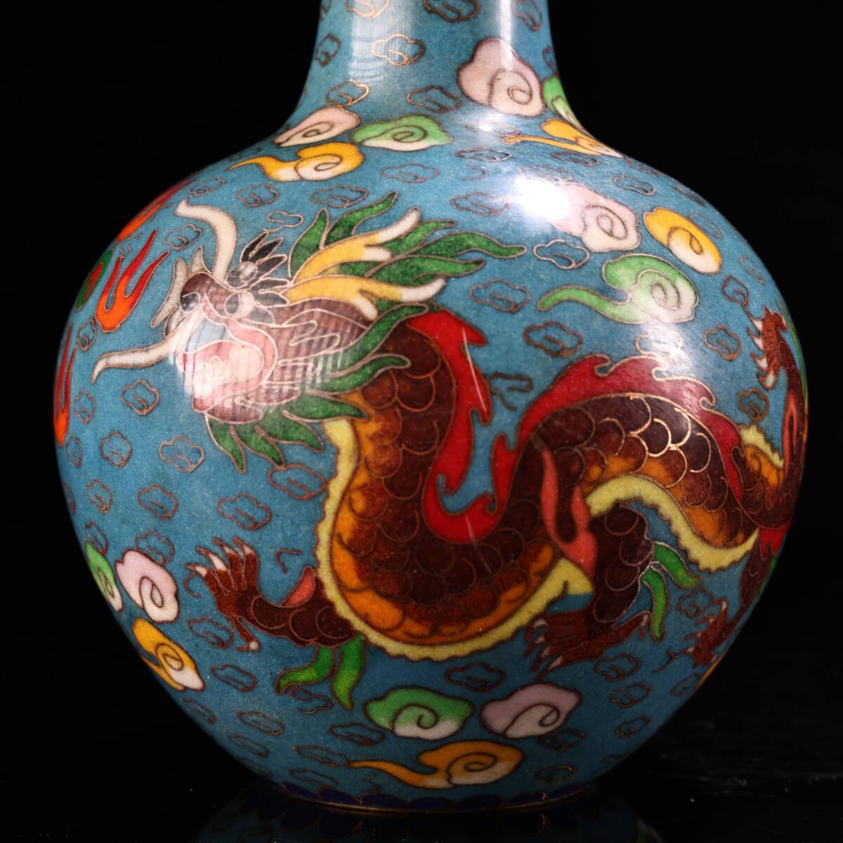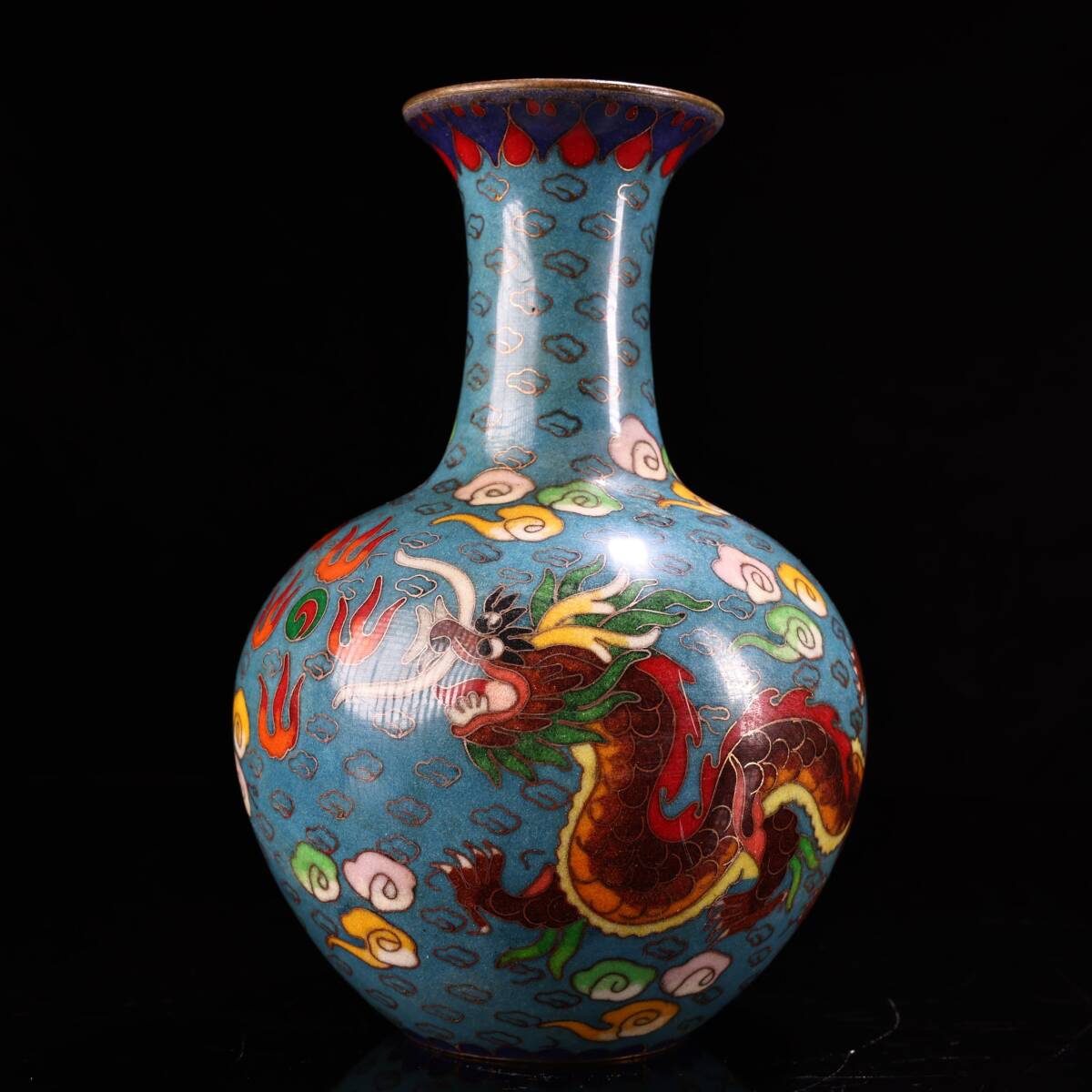館蔵 清時代 乾隆款 銅胎景泰藍 琺瑯彩 龍鳳呈祥紋 花瓶 花器 古擺件 古置物 中国古美術 古美味 蔵出