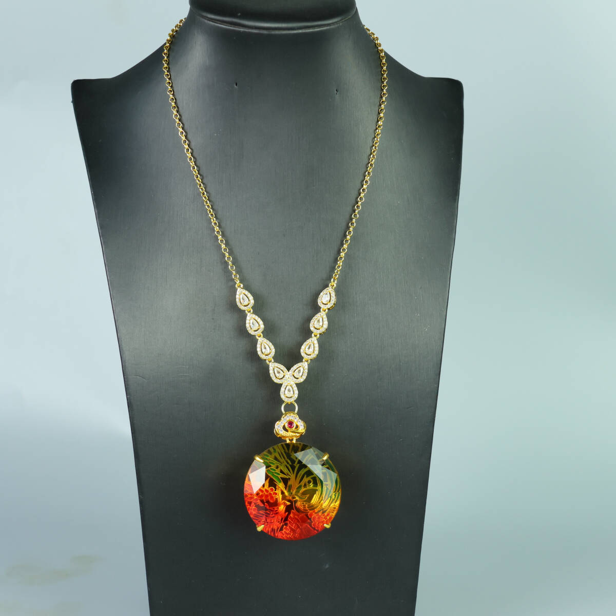 旧家蔵出し 貴石細密彫 ネックレス ペンダント 飾物 極細工 置物擺件 美術品 旧家蔵出