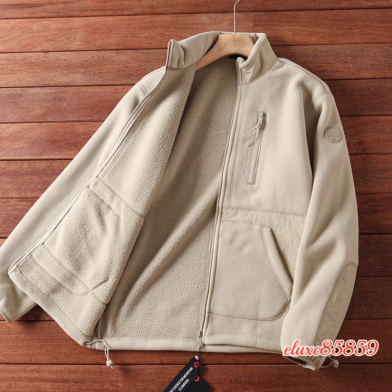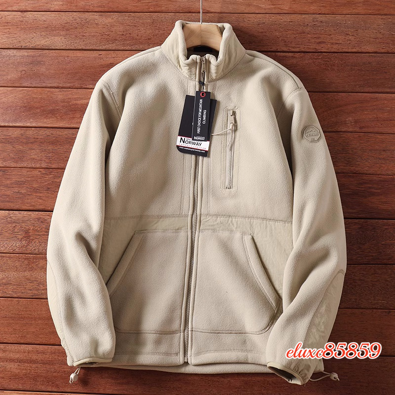 新品 メンズ フリース ジャケット アウトドア 防寒 スタンドカラー ジャケット 秋冬 登山 レジャー 保温 軽量 カーキ サイズ選択可M