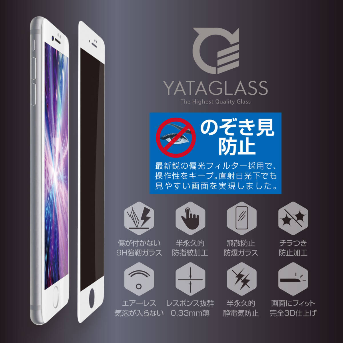 96%OFF iPhone8Plus用 覗見防止(白) 2枚 3D保護ガラス YATAGLASS TAKUMI 全面シリコン吸着 未使用