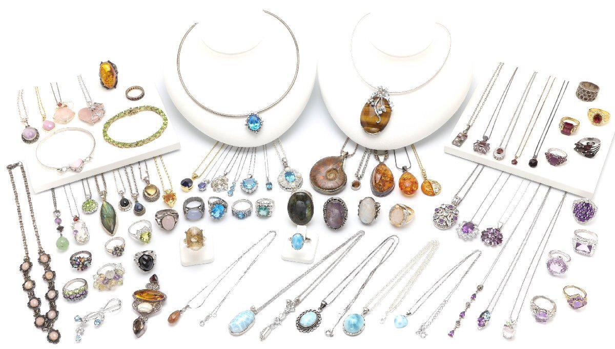 おたからや◆シルバー/925等刻印有 石付きアクセサリーおまとめ 製品で約780g ペンダント,リング等 ※一部パーツ磁性有【B-YA02200】