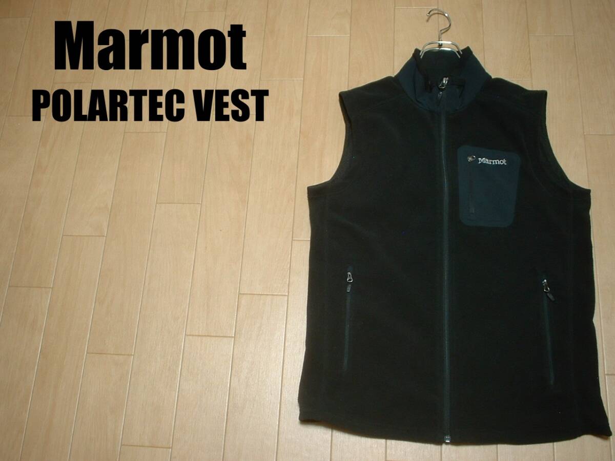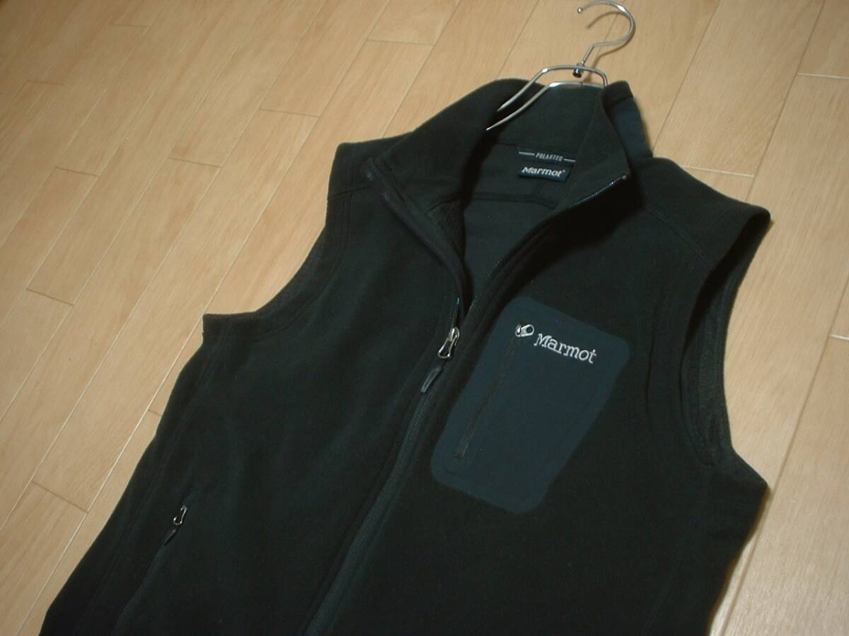 MarmotジップアップPOLARTECフリースベスト美品M黒ブラック正規マーモットE81070ポーラーテックジレボアロスガトスレトロXカーディガン