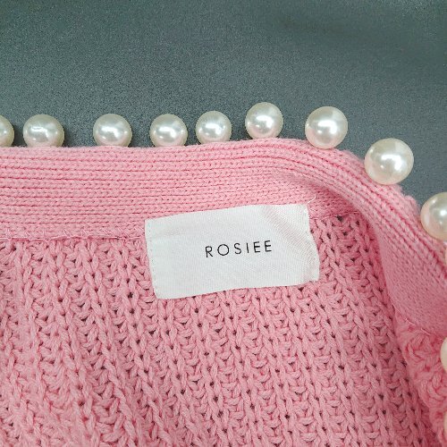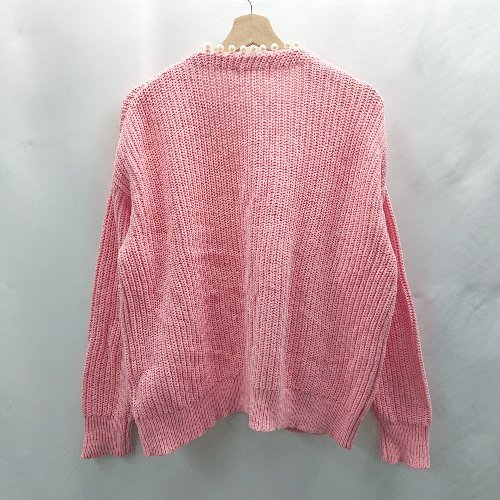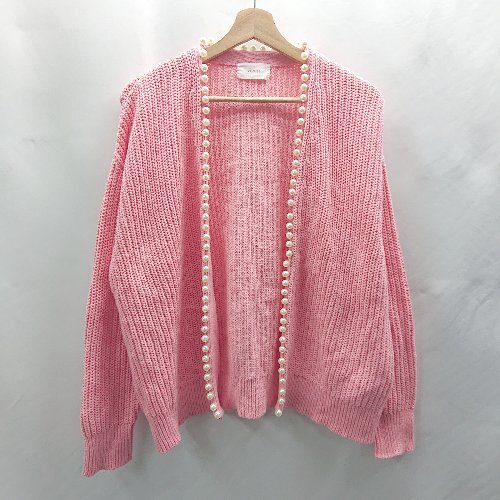 ◇ ⊇ ROSIEE パール 長袖 ニットカーディガン サイズF ピンク レディース E