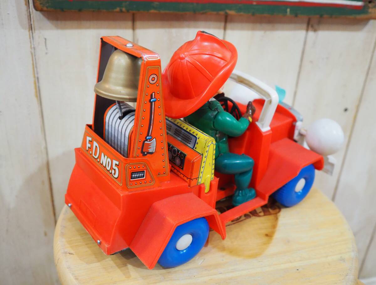 ◆当時もの バンダイ BANDAI F.D No.5 電池式 ブリキカー 消防車 アンティーク ヴィンテージ◆