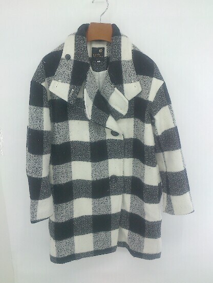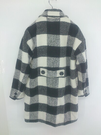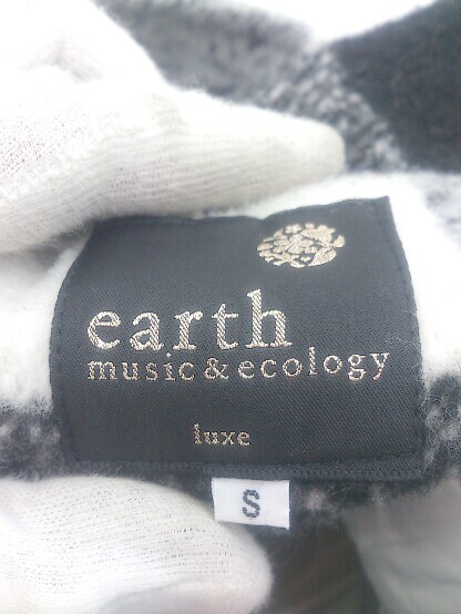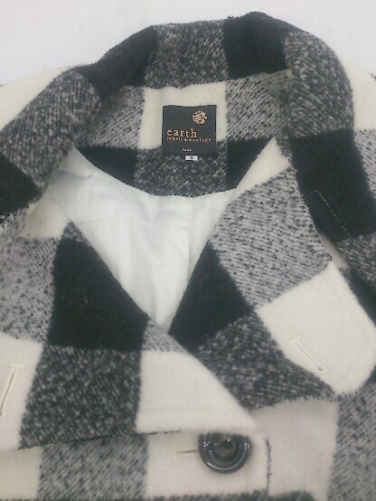 ◇ earth music&ecology チェック柄 あったか 長袖 チェスターコート サイズS ブラック ホワイト レディース E