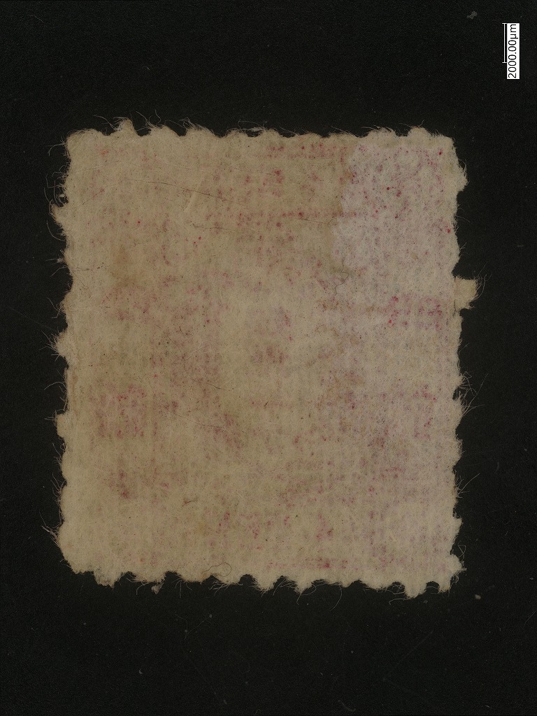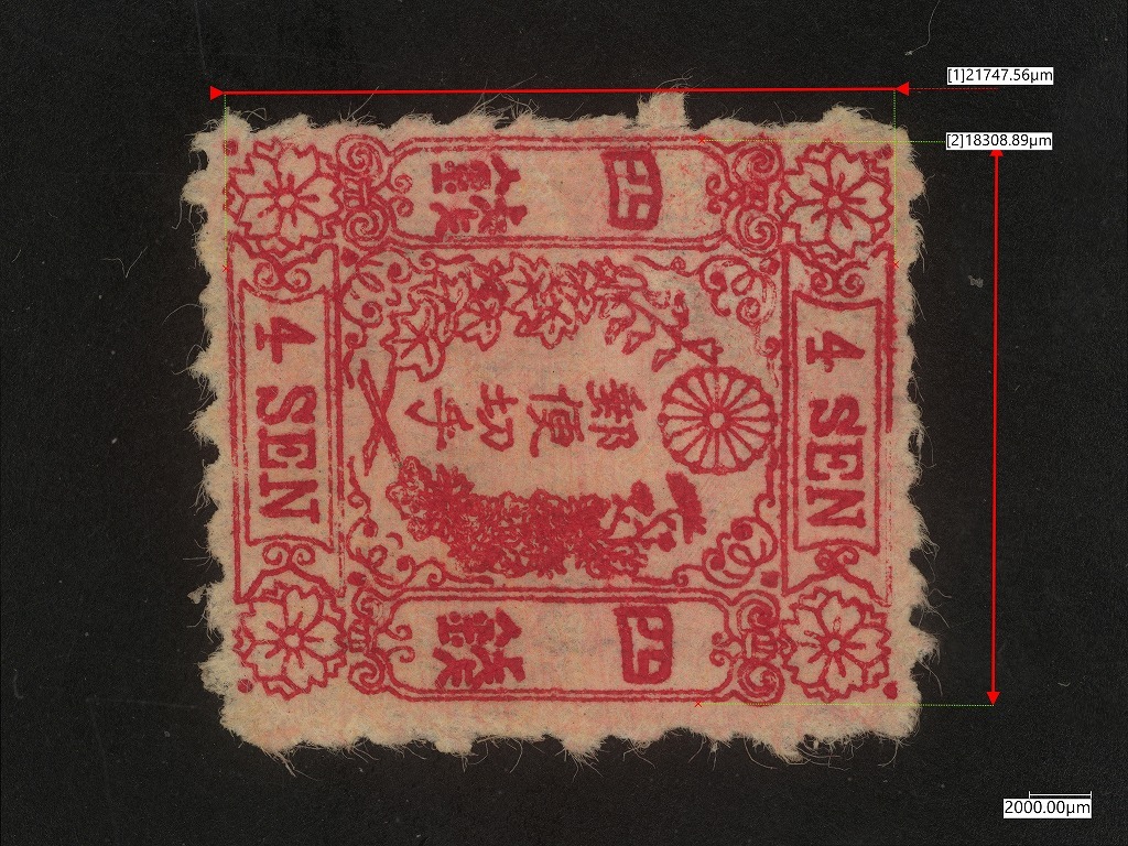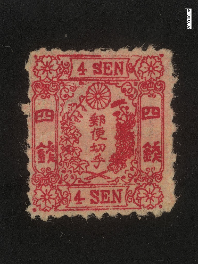 市場にございます手彫切手の多くが贋作や、加工修正品(切手商の鑑定品を含む)であるため独自に印刷方法、紙、インキ、糊、修正加工の有無について分析を含む検査を実施いたしました