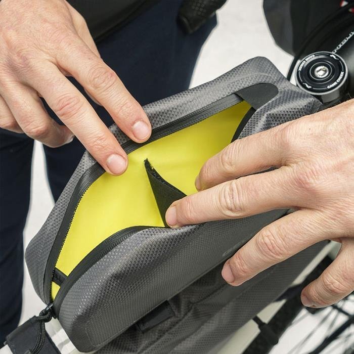 スチールやチタンの細いフレーム、幅の広いハイドロフォームやカーボンチューブにバッグを適応させることができるように、サイズの異なる2つのベルクロストラップが付属。