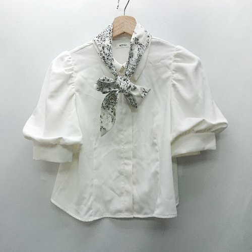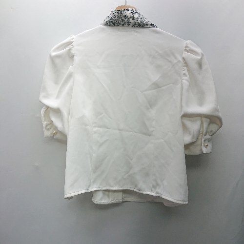 ◇ ⊂ ◎ one after another NICE CLAUP 総柄 パールボタン付き 半袖 ブラウス サイズF ホワイト ブラック レディース E