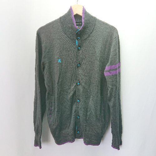 ◇ R.NEWBOLD アールニューボールド フロントボタン ニット 長袖 カーディガン サイズL チャコールグレー レディース E