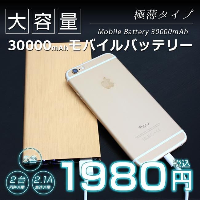 関連ワード:モバイルバッテリー 30000mAh 大容量 充電器 2台同時充電 携帯充電器 国内仕上 日本製 海外製 スマホ充電器 iPhone iPad Android 対応 2USB出力 PSE認証済
