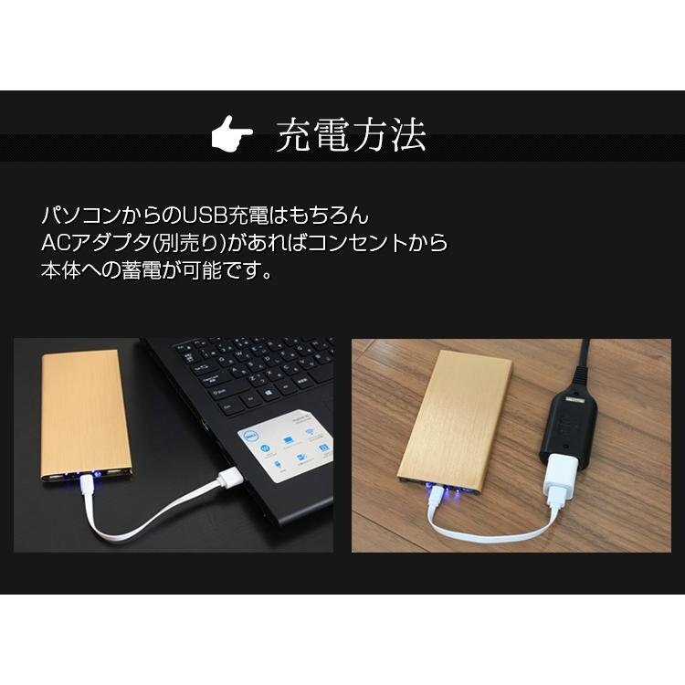 ゴールド モバイルバッテリー 30000mAh 大容量 軽量 2台同時充電 急速充電器 USB充電器 スマホ バッテリー 携帯充電器 防災グッズ A08