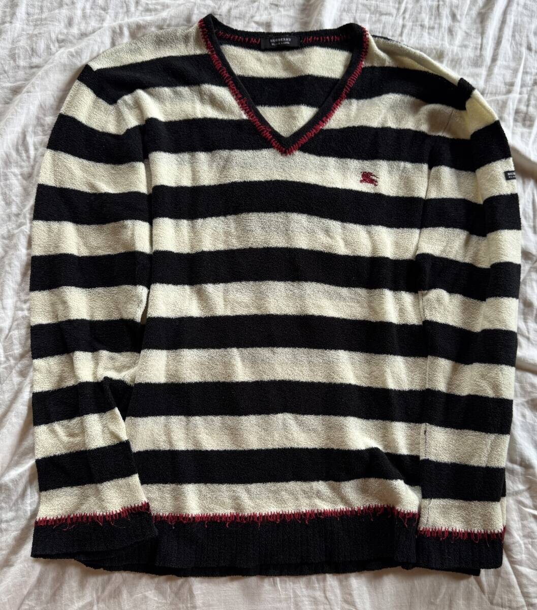 バーバリーブラックレーベル ニット セーター モノクロ ボーダー シンプル ロゴ