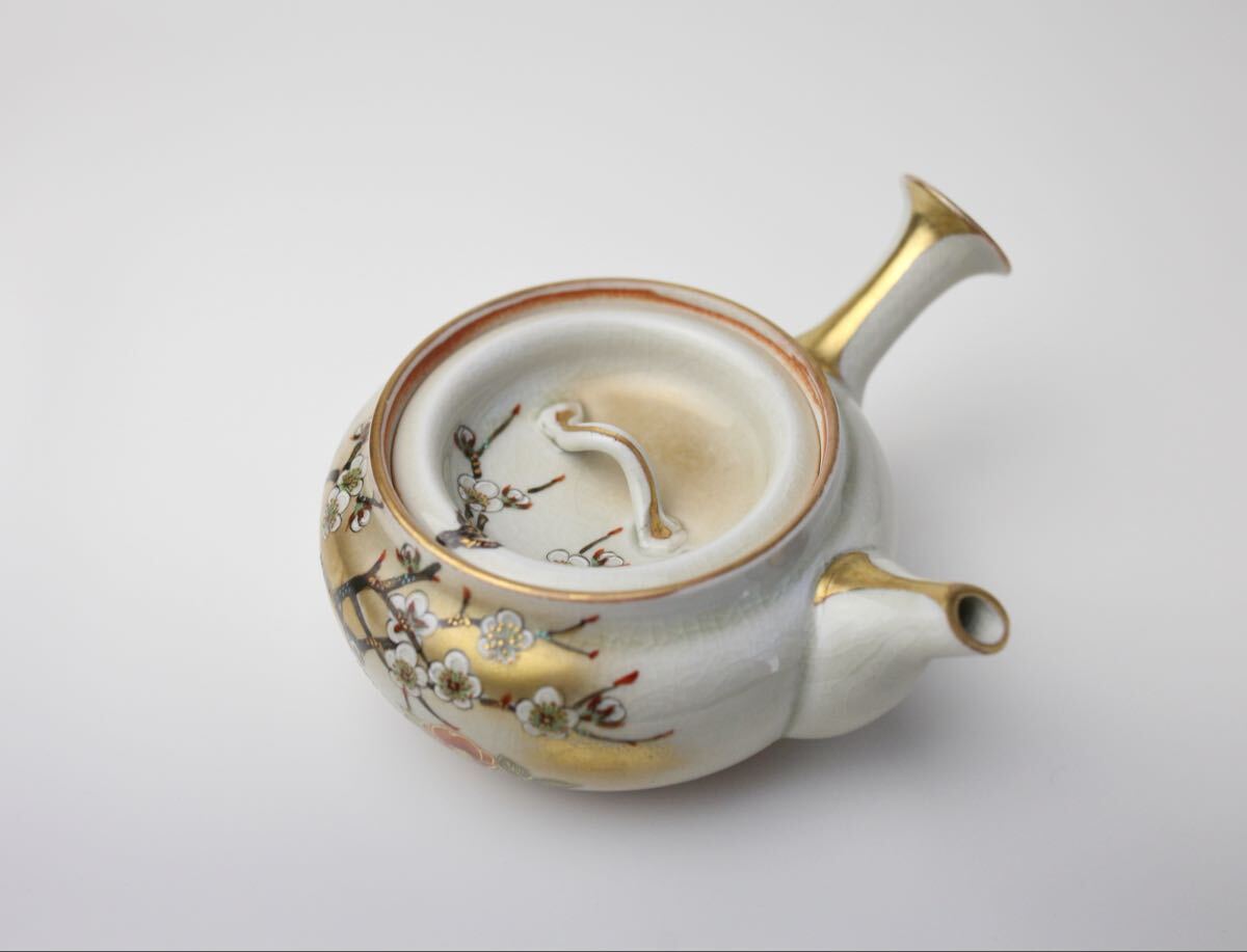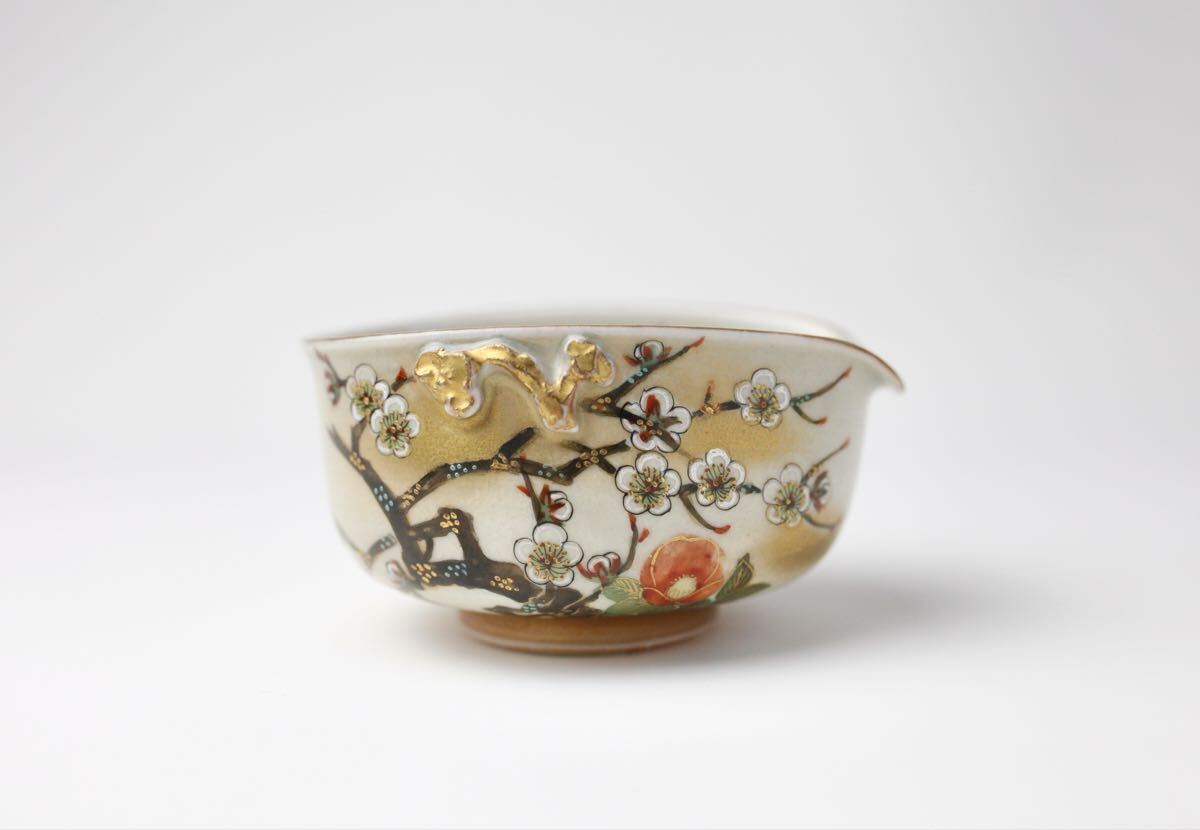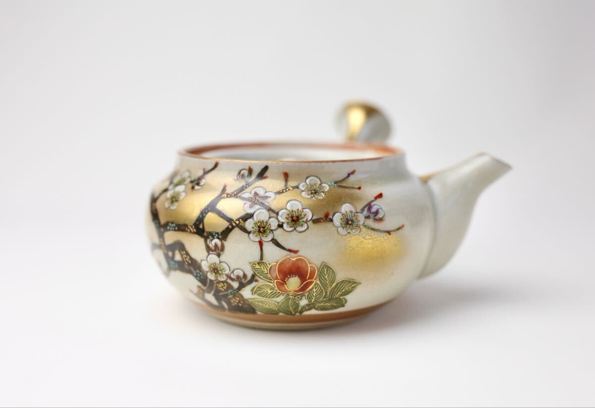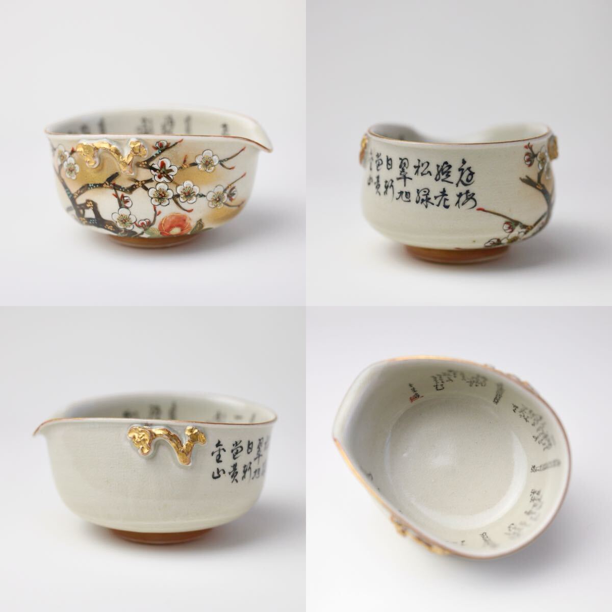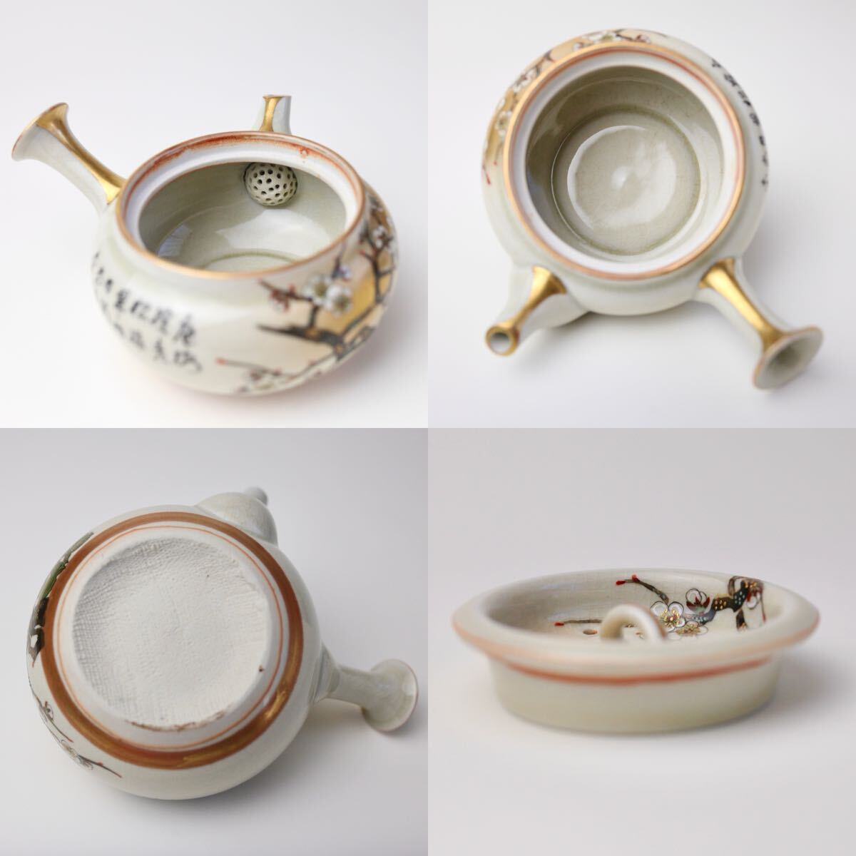九谷焼 田村金星 細字 煎茶道 和歌 梅椿図 霊芝耳 急須 煎茶道具 煎茶碗 金彩 湯冷 湯冷まし 茶器揃 九谷