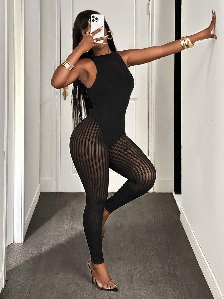 | 商品名 | ボディスーツ レディース 無地 クルーネック ノースリーブ タイトつなぎ服 |