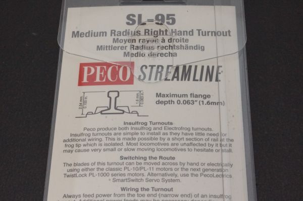 PECO SL-95 Medium Radius Right Hard HO/OO Universal Code 100Nickel Silver Rail