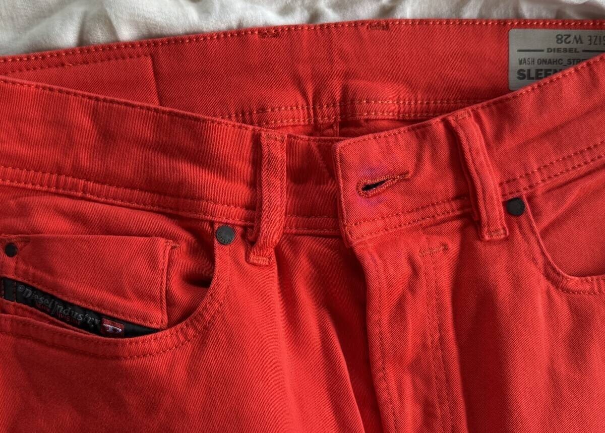 ディーゼル カラーパンツ 長期保管品 w28 SLEENKER-A ボタンフライ 高級タイプ 細身