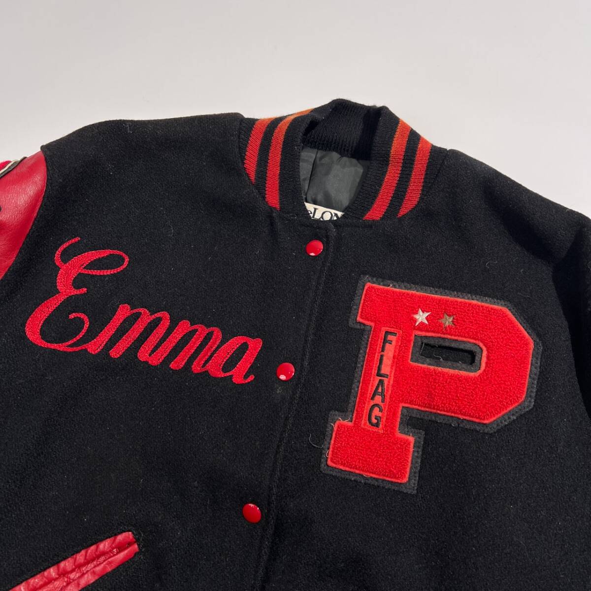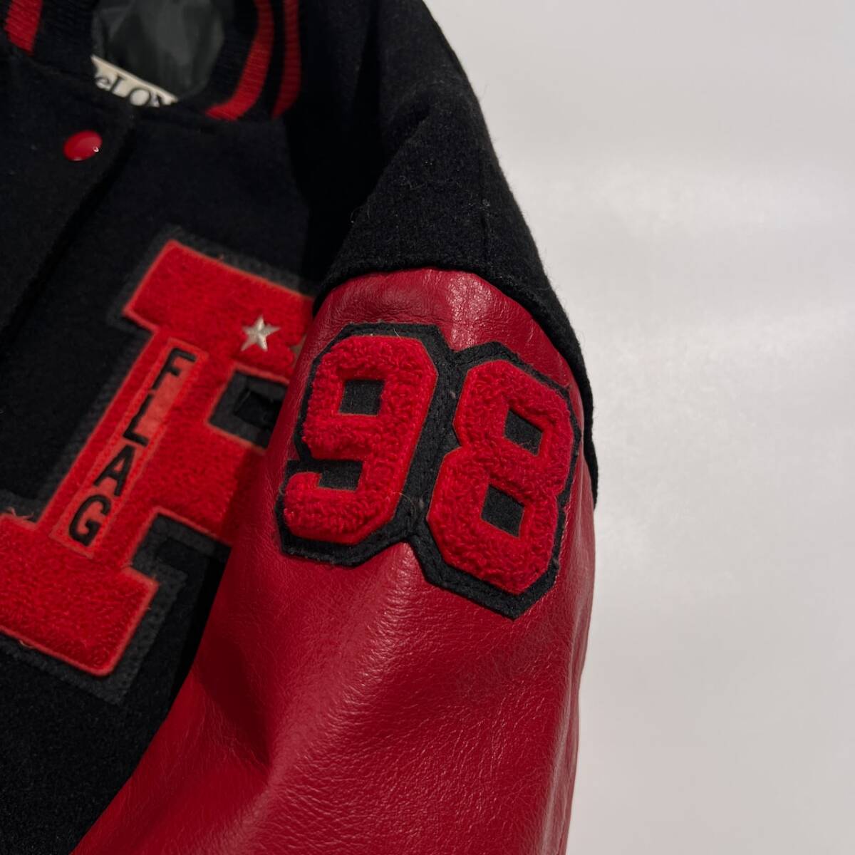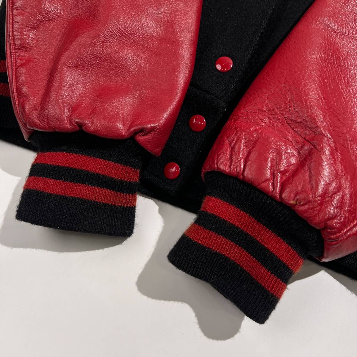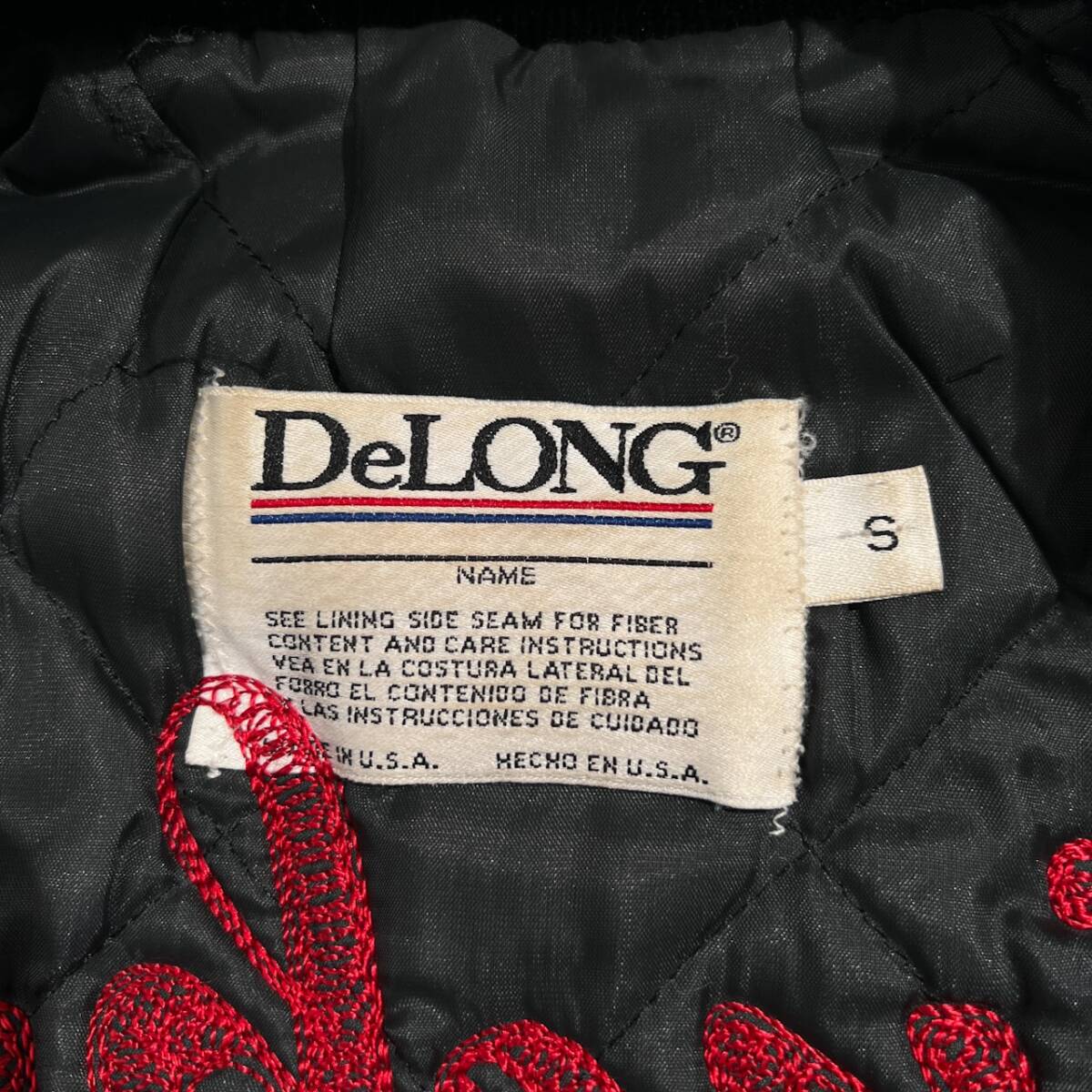 | 商品名 | USA製 DeLONG フルデコ 刺繍 ワッペン 袖革 本革 レザー スタジャン サイズ S /メンズ/ビンテージ/アメリカ製/ブラック×レッド |