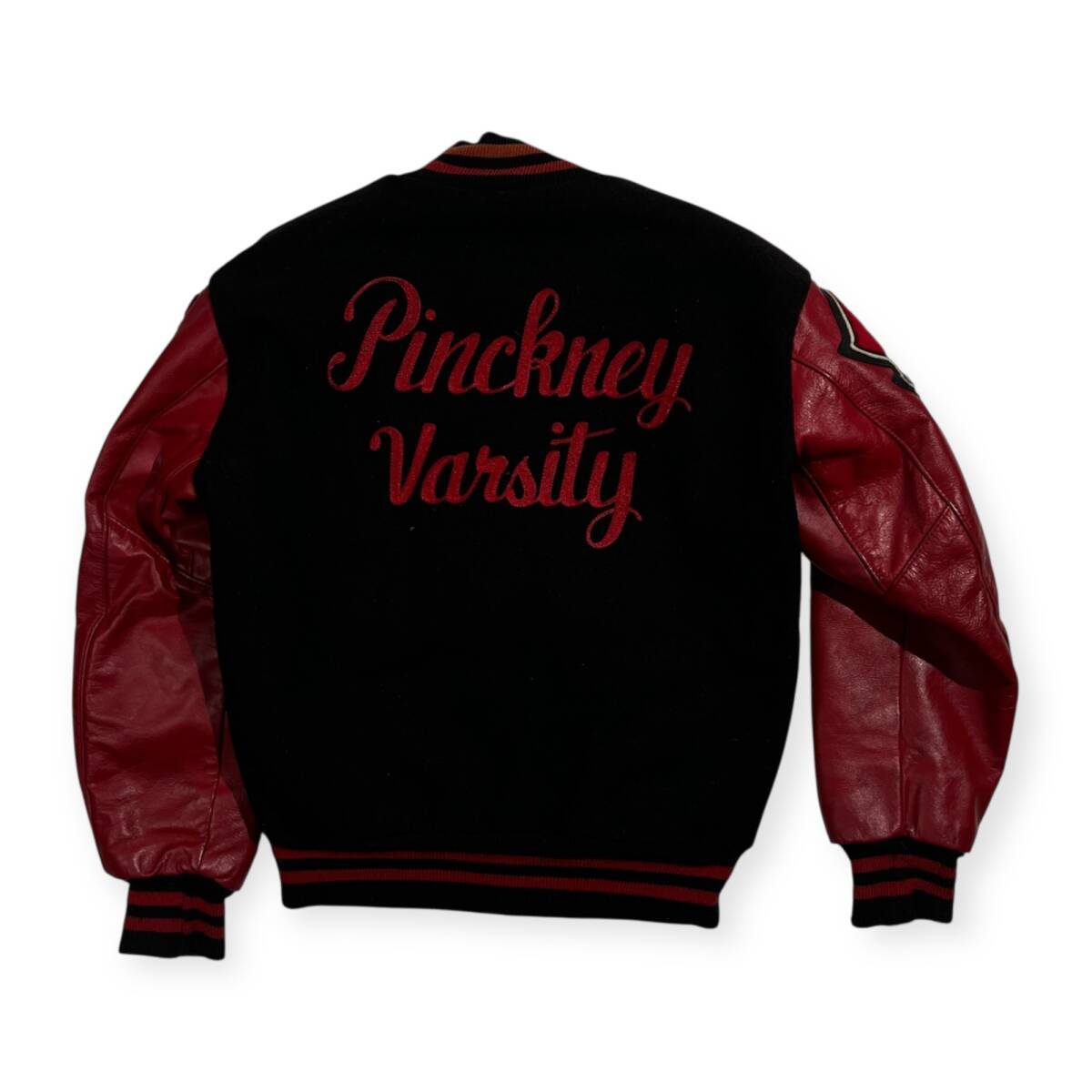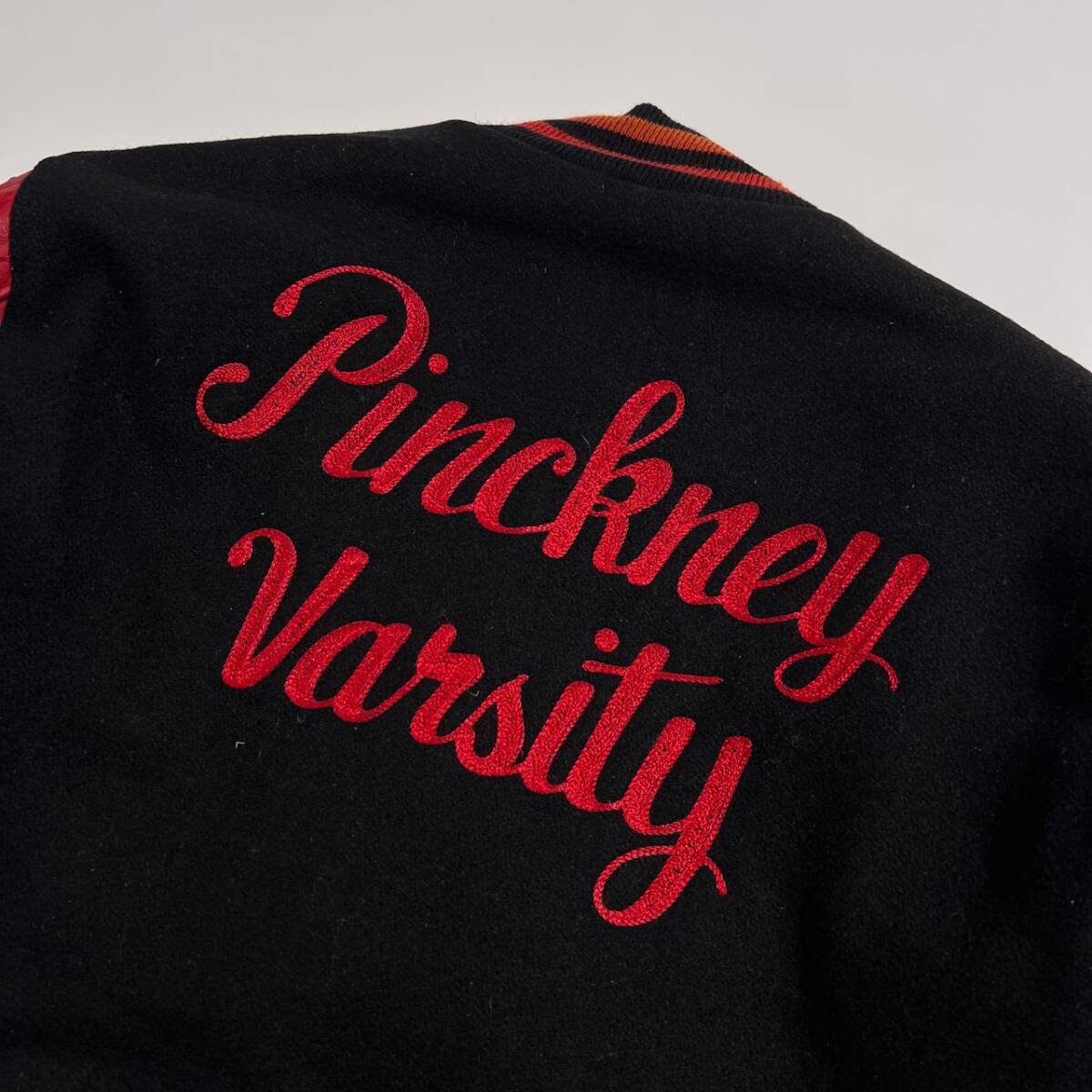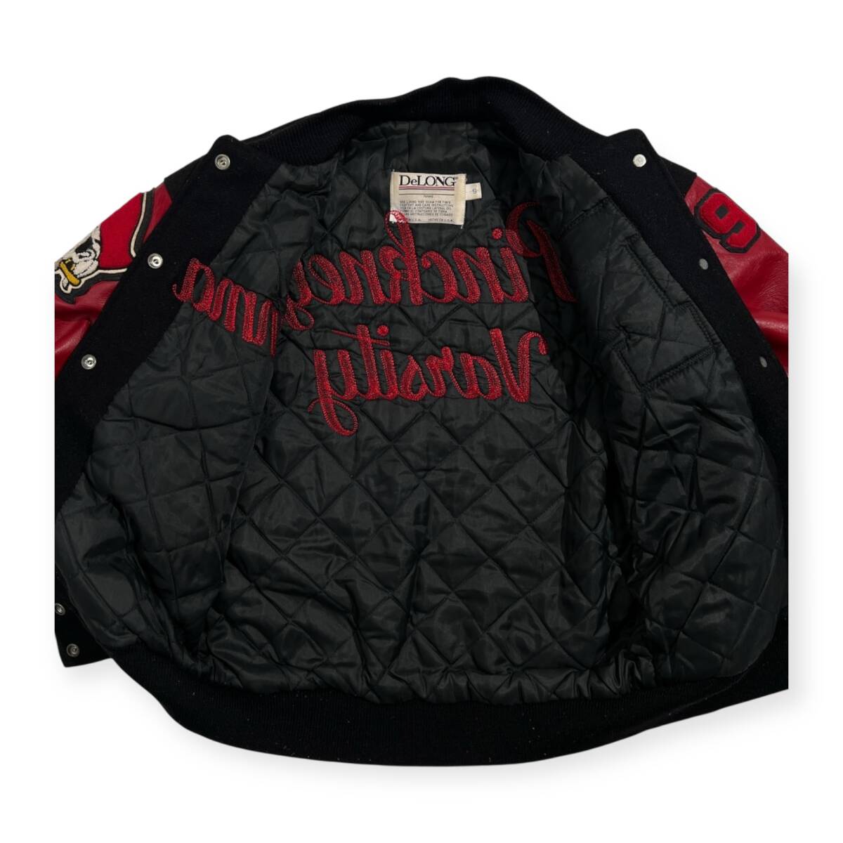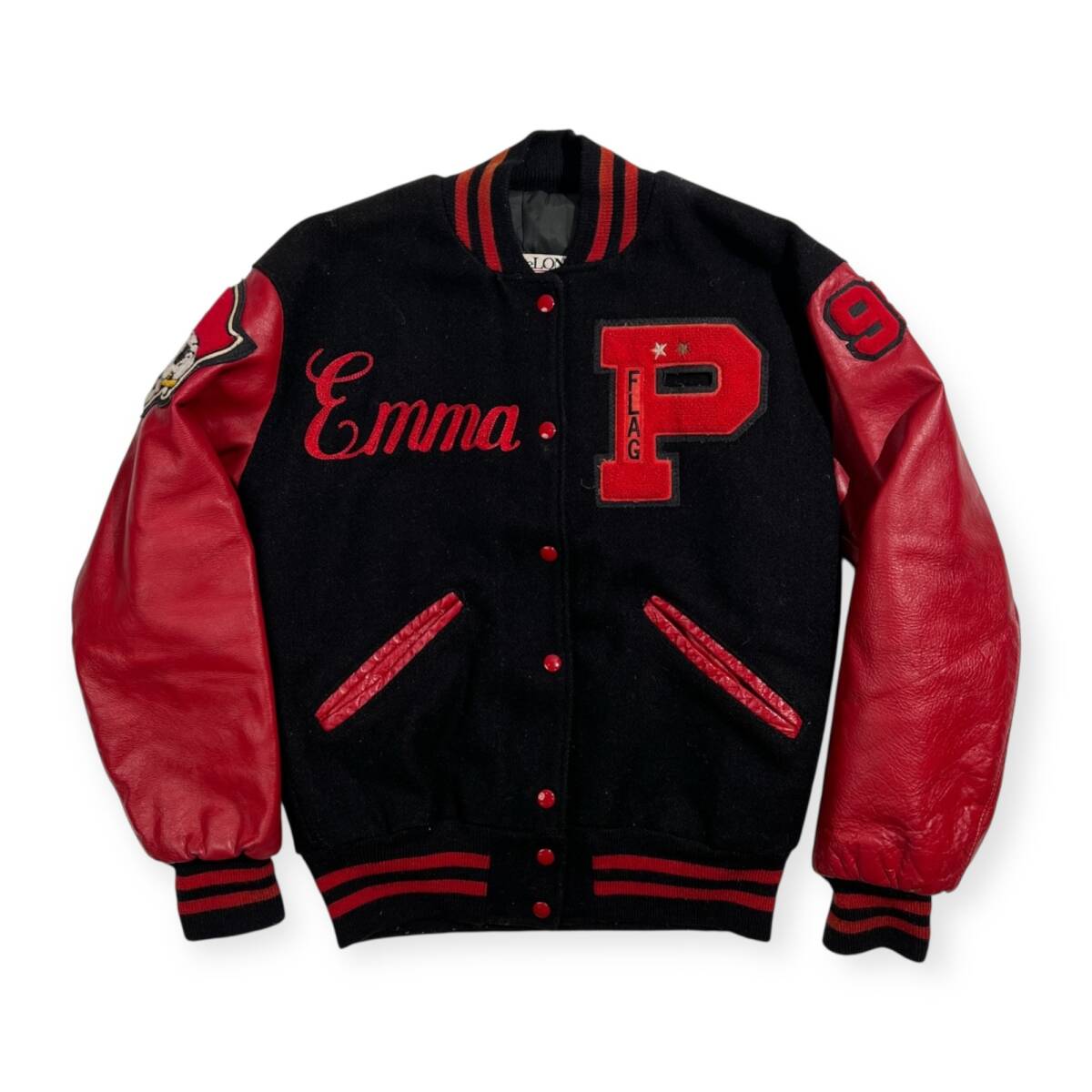 | 商品名 | USA製 DeLONG フルデコ 刺繍 ワッペン 袖革 本革 レザー スタジャン サイズ S /メンズ/ビンテージ/アメリカ製/ブラック×レッド |