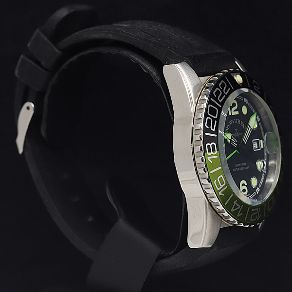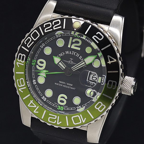 1円 稼働 良品 箱/保付 ゼノウォッチ QZ 6349-515.24H エアプレーンダイバー 500M 黒文字盤 デイト メンズ腕時計 0506000 11JWT IKE
