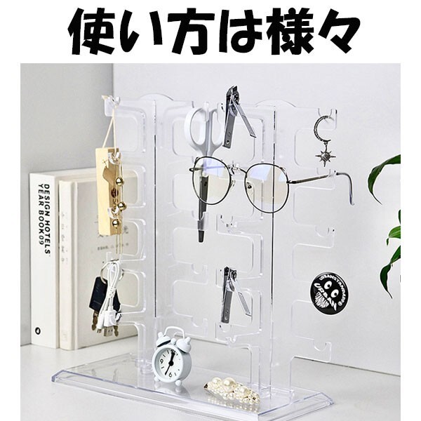 | 商品説明 | サングラス メガネ アクセサリーをおしゃれに収納! タワー型の眼鏡スタンドで部屋のインテリアに馴染みます 10本用なので余りのスペースは 時計置き イヤリング ネックレスの収納にもOK シンプルなデザインで部屋の雰囲気を害しません 透明アクリルプラスチック製 少しでも安く提供するため簡易包装でのお届けです。可能性は少ないですがプラスチック製のため輸送時にスレやキズが付く場合がございます |