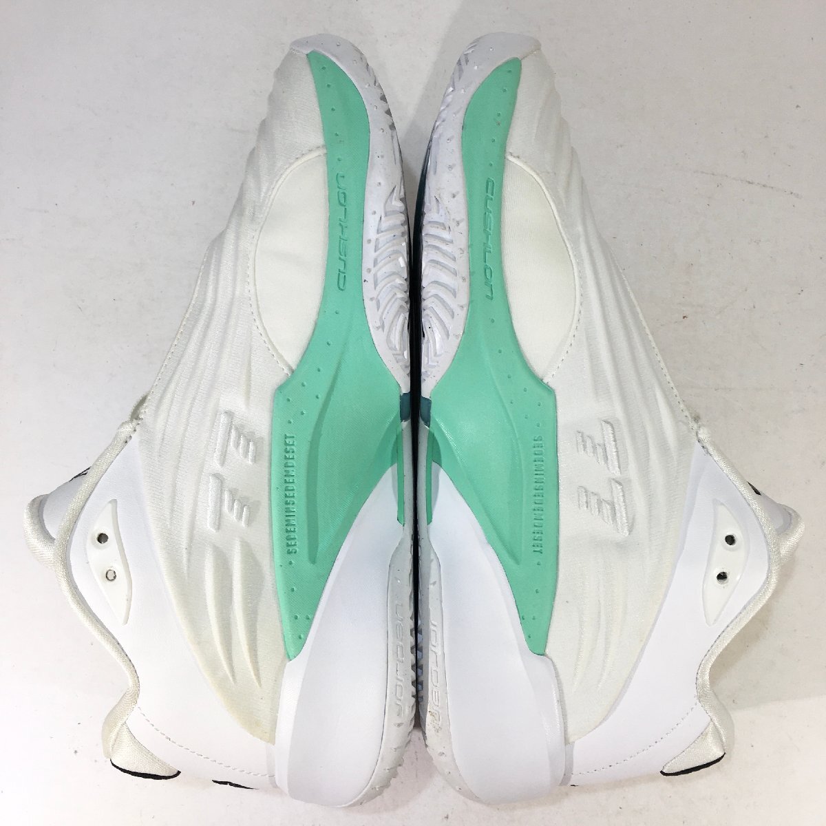 ・アッパーの状態:未使用状態ですが、全体的に経年変化、劣化による黄変、変色、保管汚れがございます。