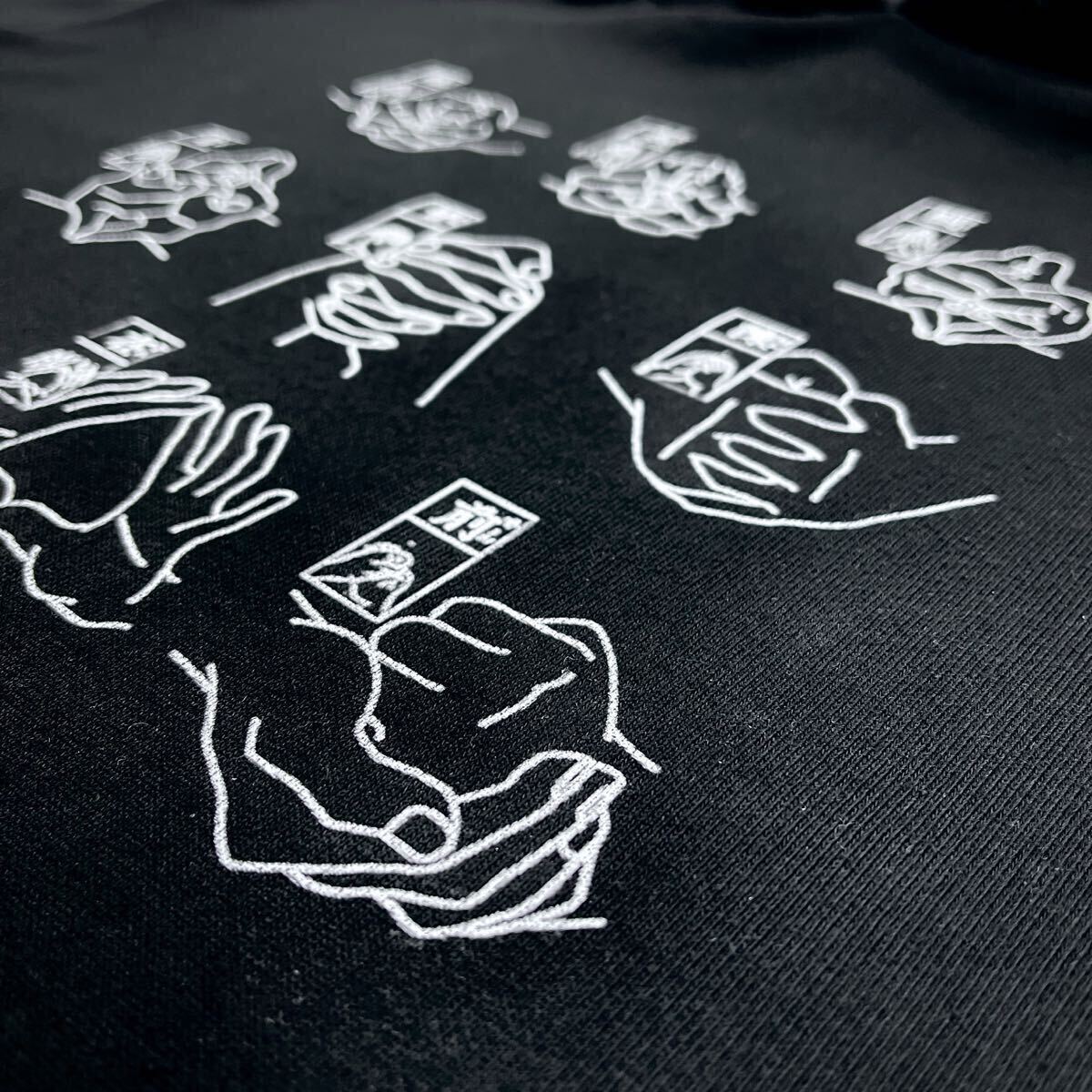 九字切り 九字護身法 除霊 邪気払い 精神統一 道教 密教 陰陽師 呪術 手形 絵図 ハンドジェスチャー パーカー