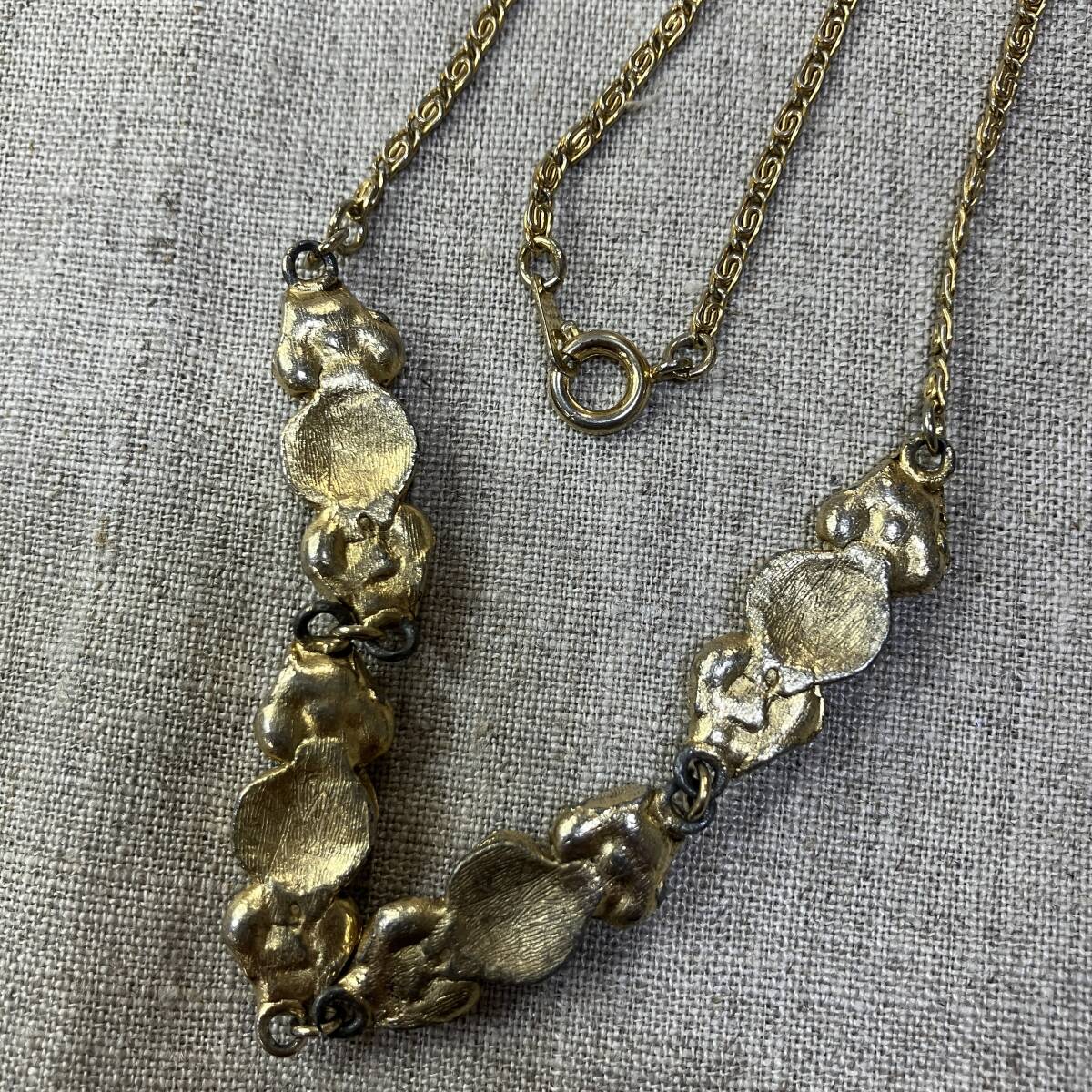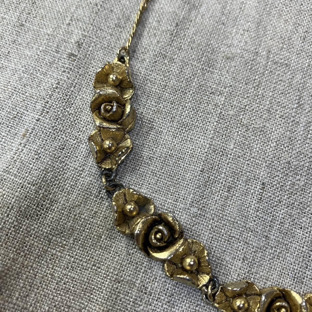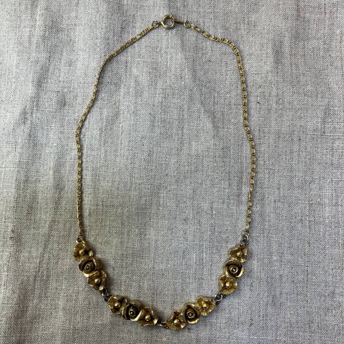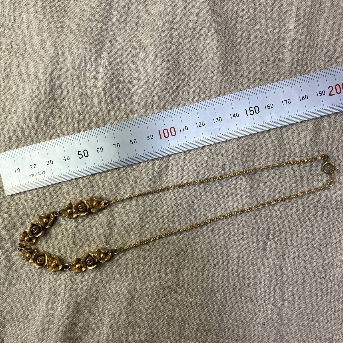【一点もの】フラワー ローズ モチーフ ネックレス ゴールドカラー ヴィンテージ風 ショート丈 中古 良品