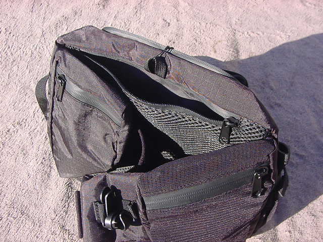 メインポケットを折りたたむとトレイルサイドのツールベンチになり、