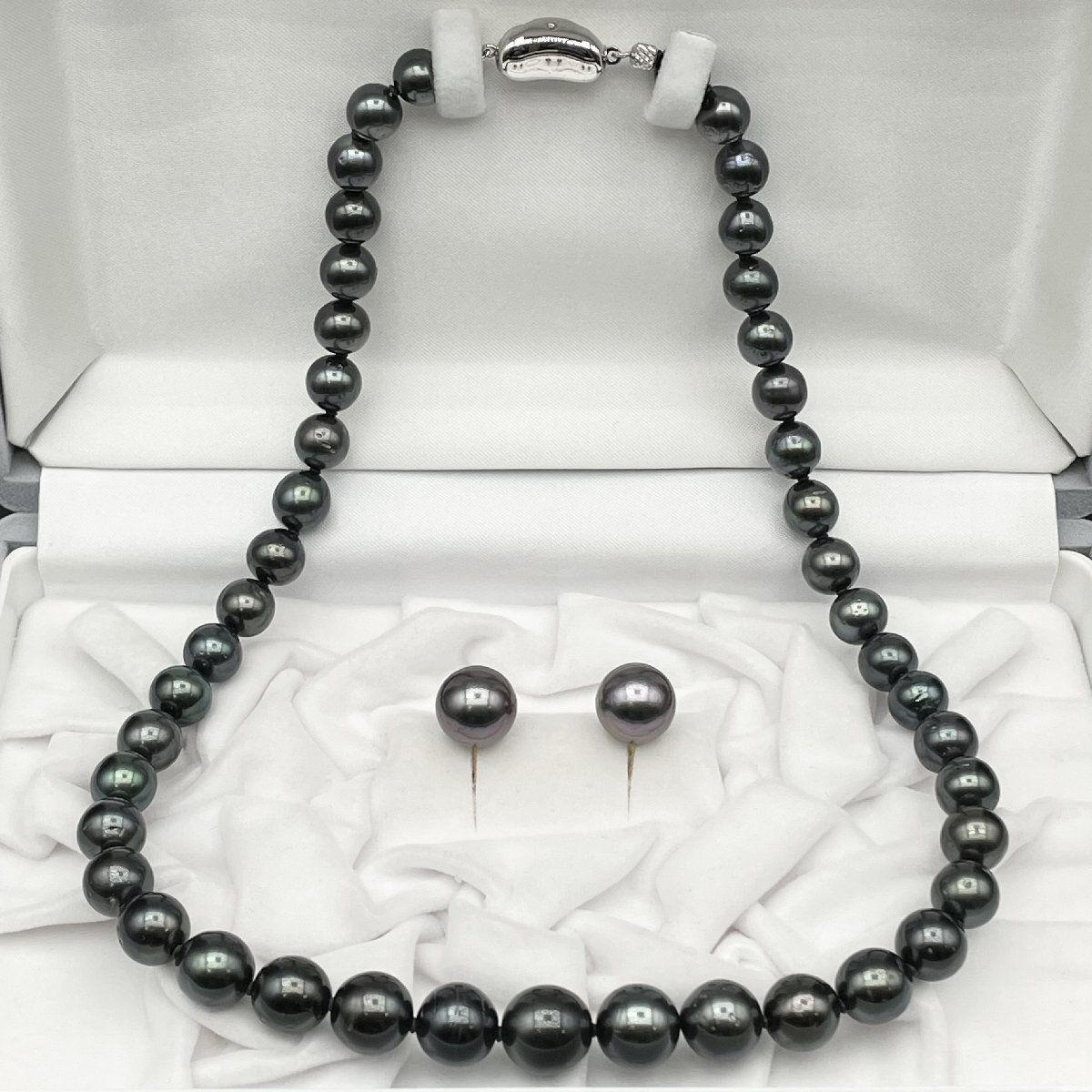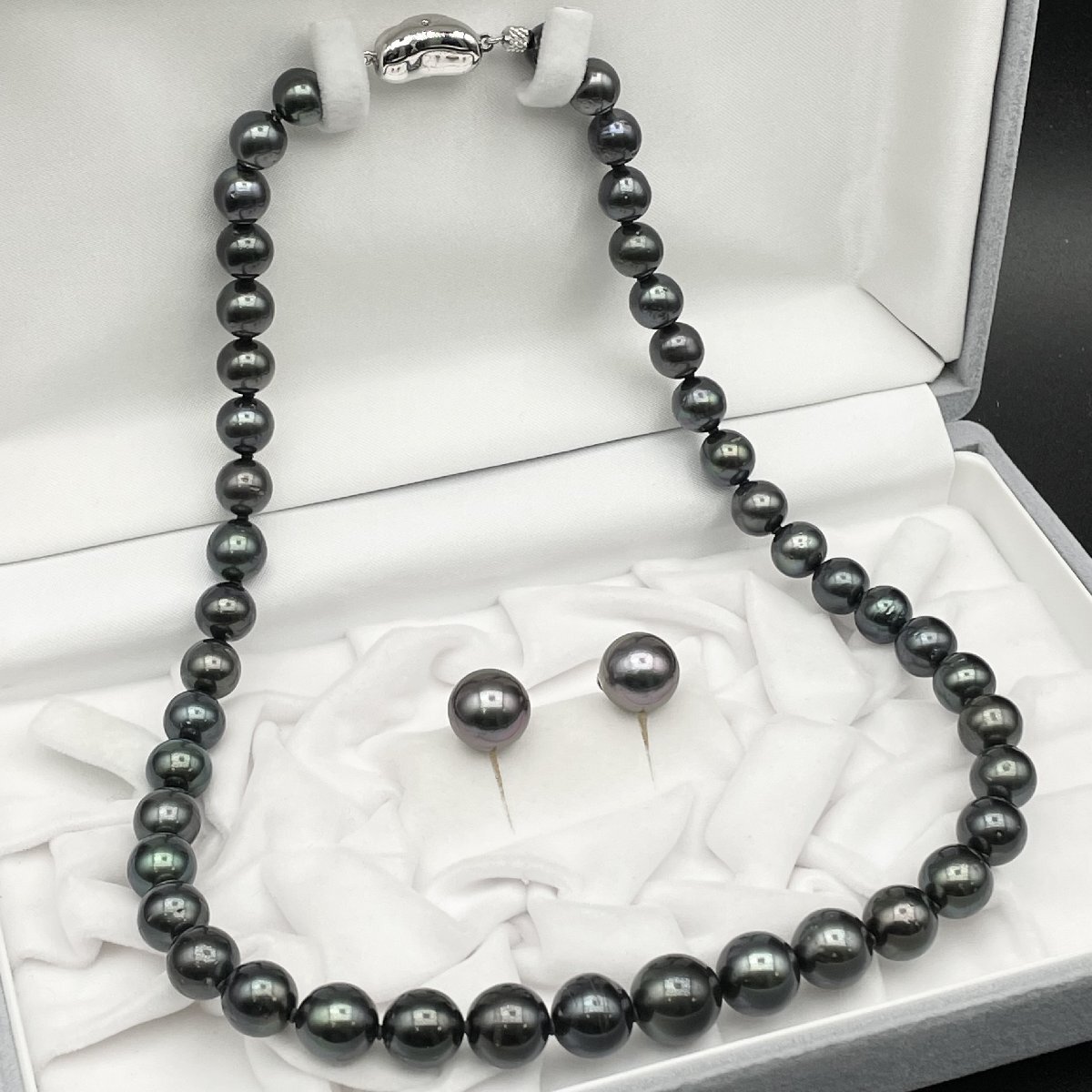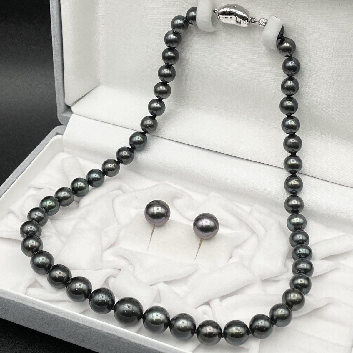 1円 希少!オーロラピーコック カラー ネックレスセット 8.0-11.0mm 黒蝶真珠 クロチョウ Pearl necklace 照り強 本真珠 【1656183-1202】