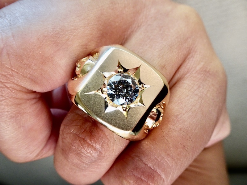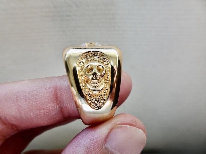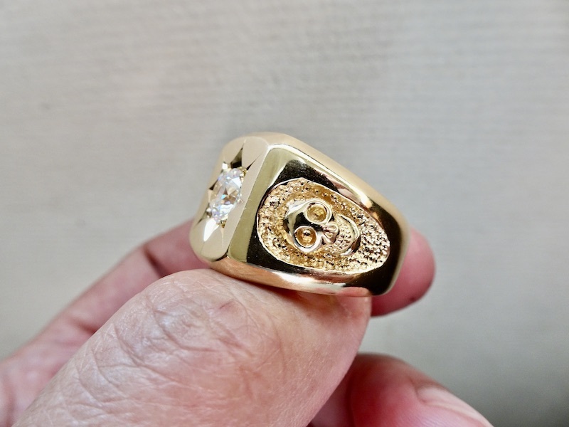 | ■ ■ 商品名: 『一つ星ジルコニア、ゴールドラッキースカル印台リング』 ■ ■ |